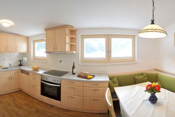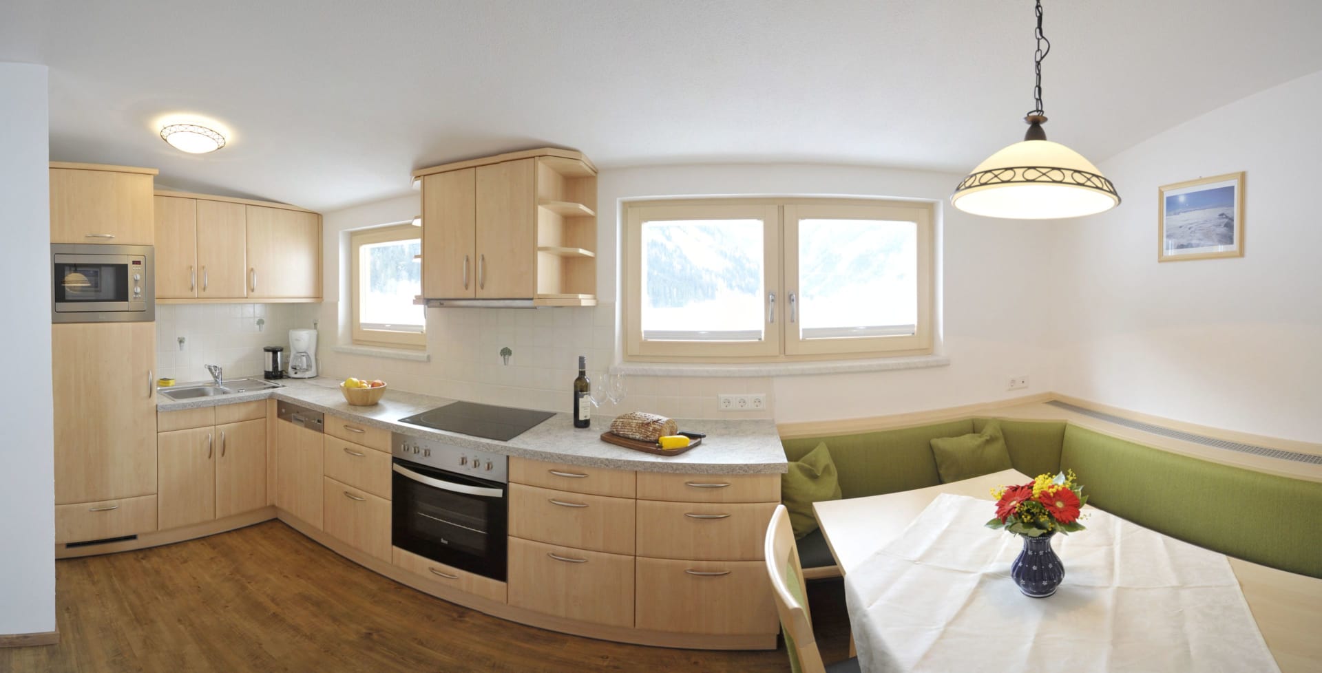 Das Appartement Rossfeld bieten ihnen die größte Küche in unserem Haus. Sie ist voll ausgestattet und lädt wirklich ein zum Kochen und Genießen. Sei es für ein leckeres Frühstück mit Blick auf die Berge, oder ein gemeinsames Abendessen, bei dem alle Zeit haben. Das Appartement bietet Ihnen einen großen Wohnschlafraum mit einem Ehebett, und einer offenen Küche. Es gibt eine Couch die auf Wunsch ausgezogen werden kann und für 2 Personen Platz bietet. Die Bäder und Küchen sind neuwertig erbaut. Die Küchen sind vollwertig ausgestattet mit Mikrowelle, Backofen, Geschirrspüler, 4 Herdplatten, Geschirr, Besteck, Töpfe, eine Kaffeemaschine und ein Wasserkocher.