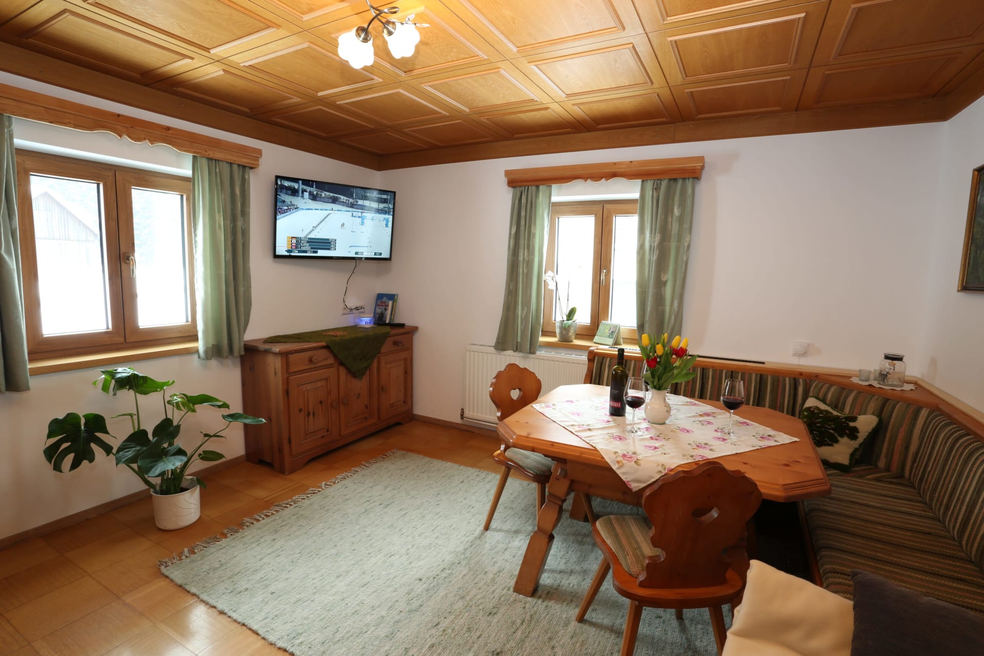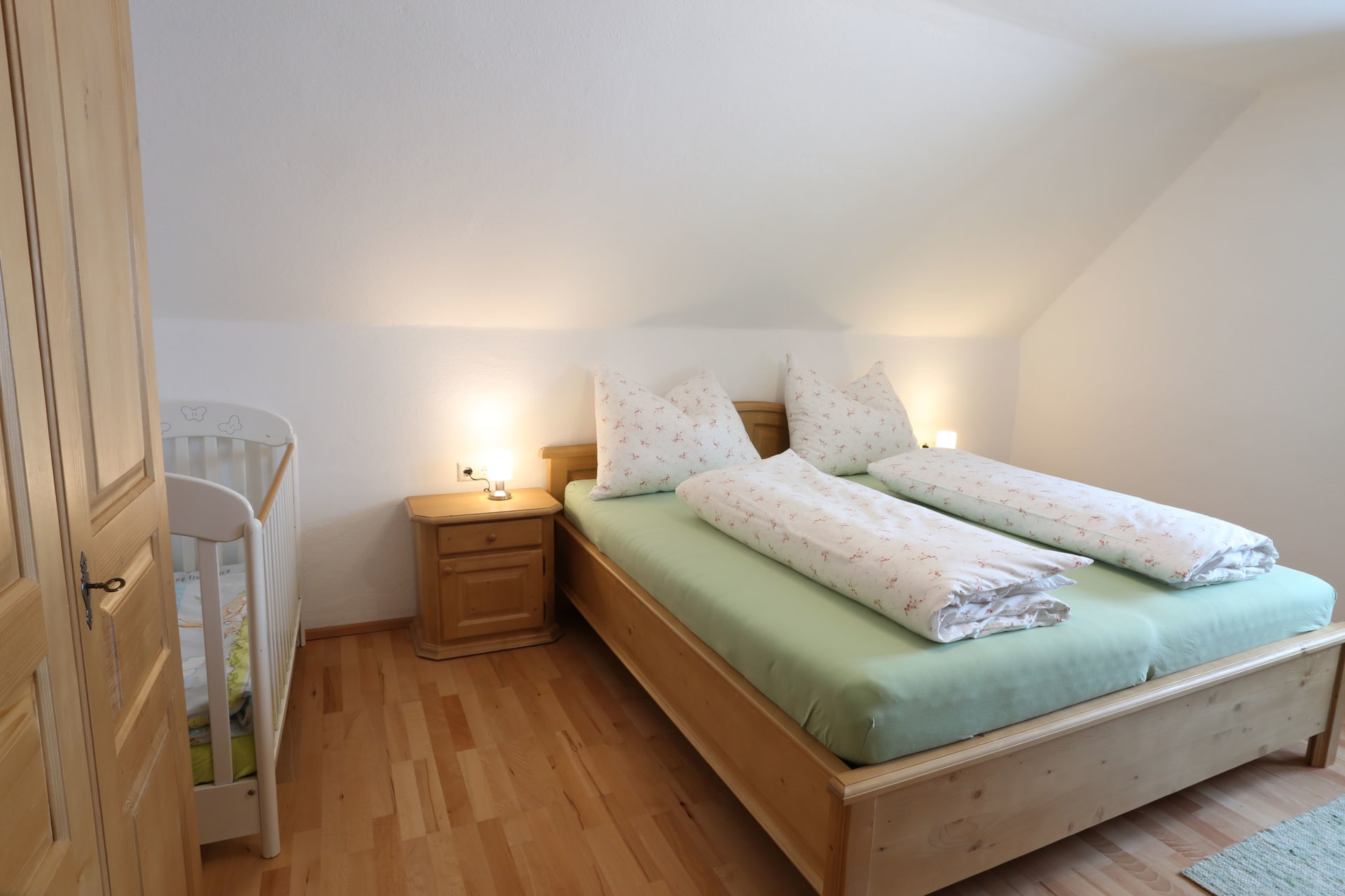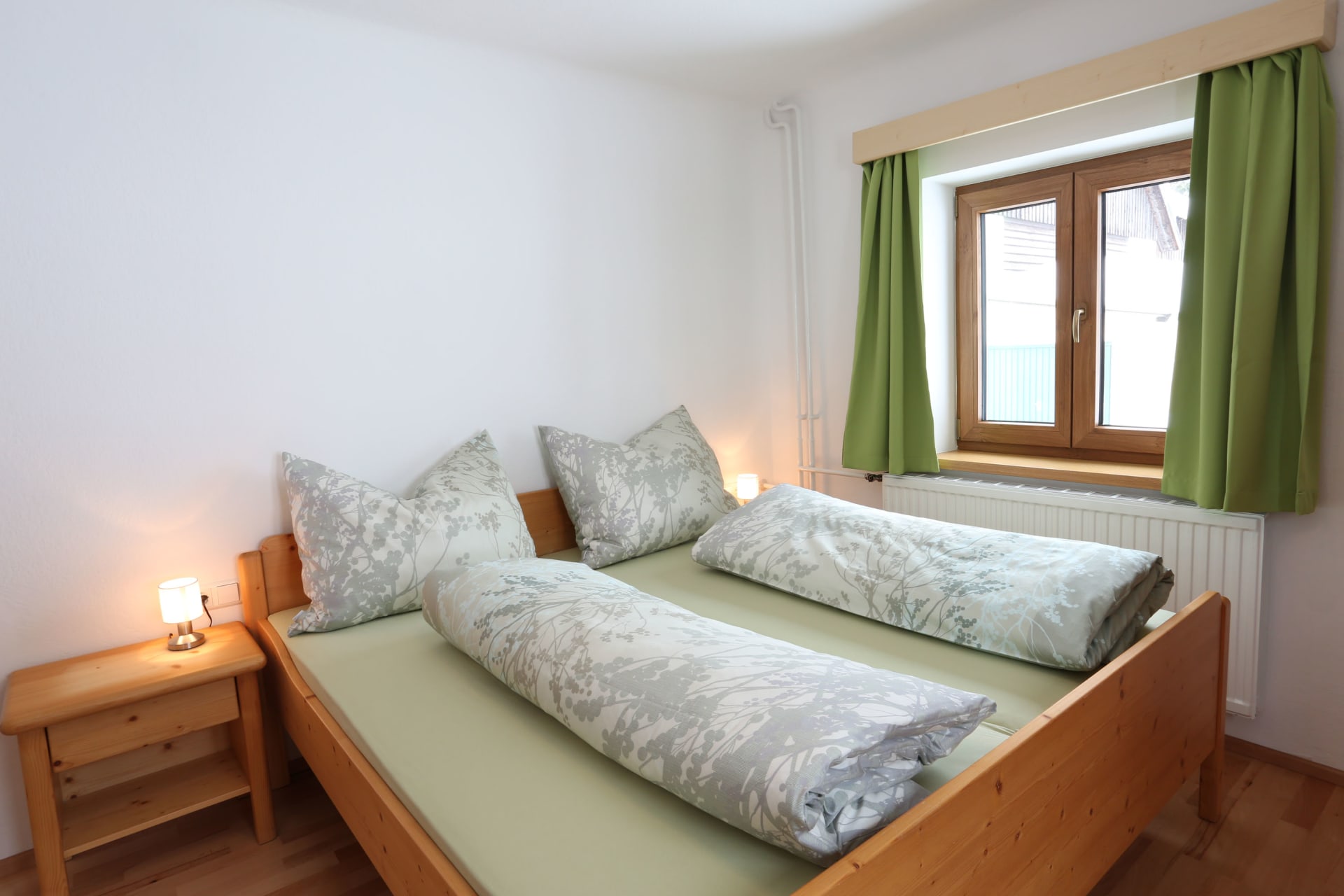 Es gibt insgesamt 4 Doppelzimmer, 2 Bäder inkl. WC, eine gut ausgestattete Küche sowie eine gemütliche Stube.