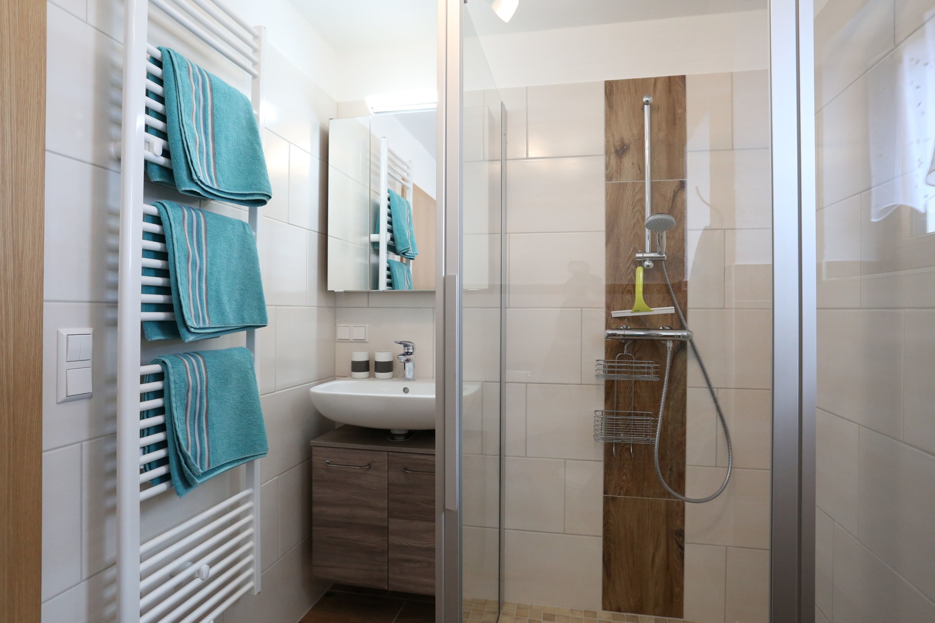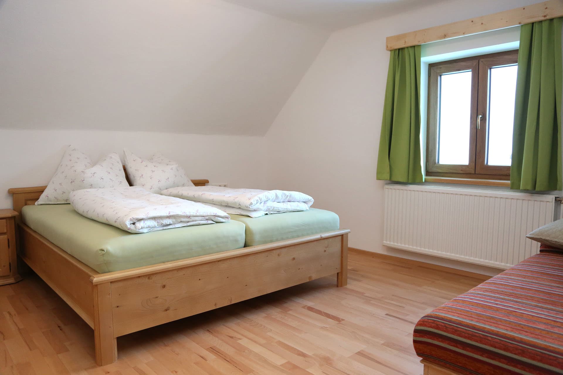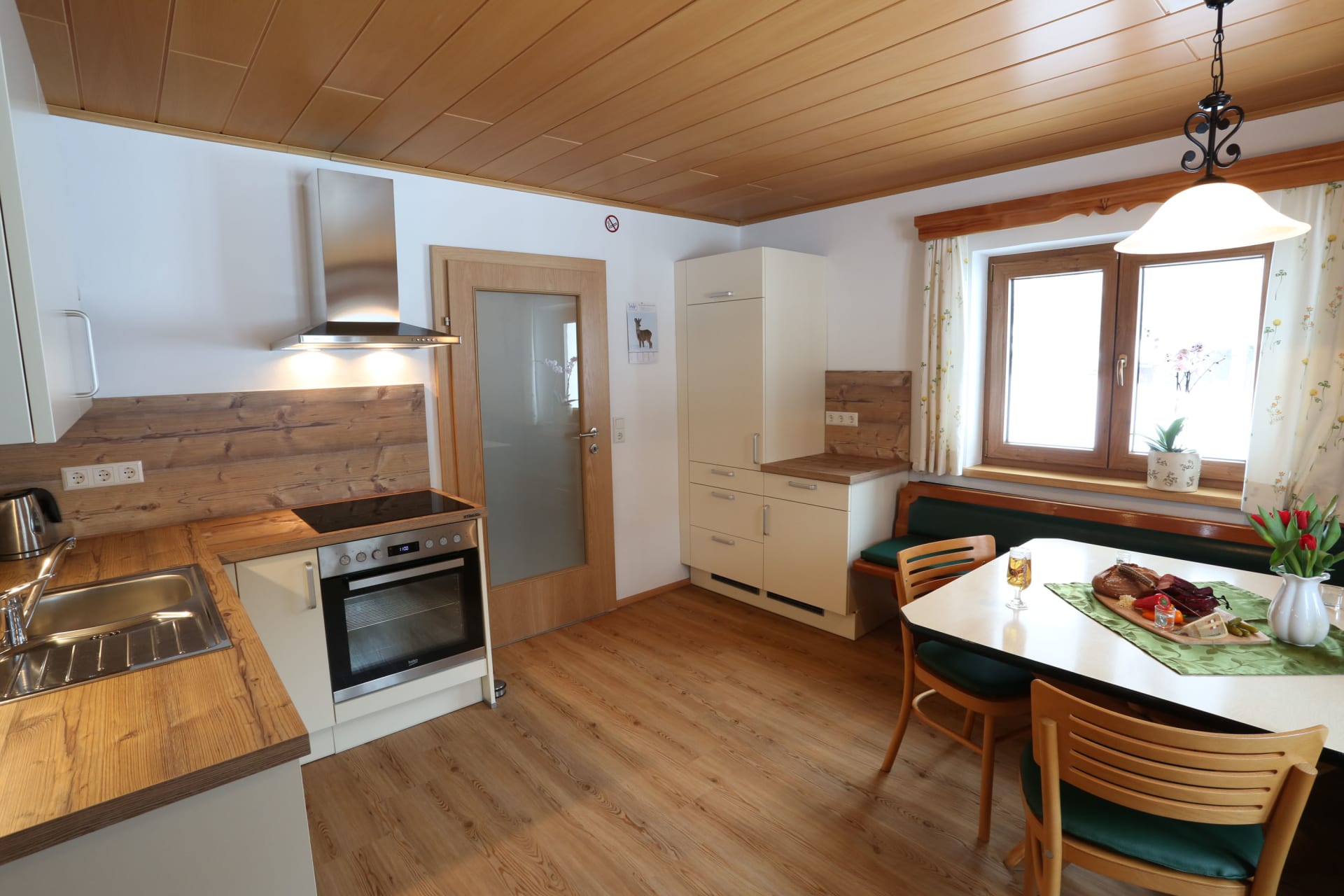 Es gibt insgesamt 4 Doppelzimmer, 2 Bäder inkl. WC, eine gut ausgestattete Küche sowie eine gemütliche Stube.