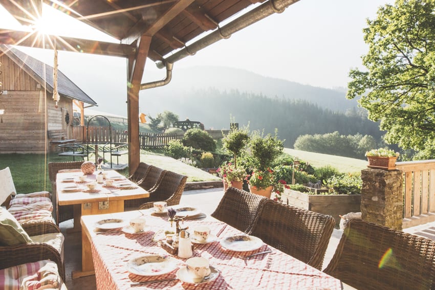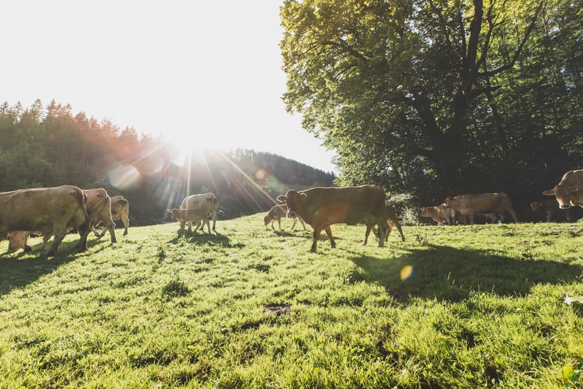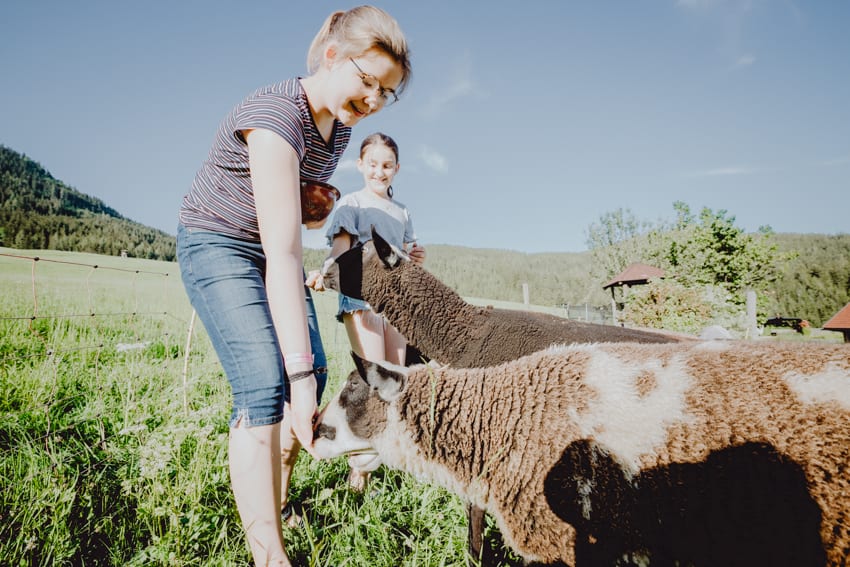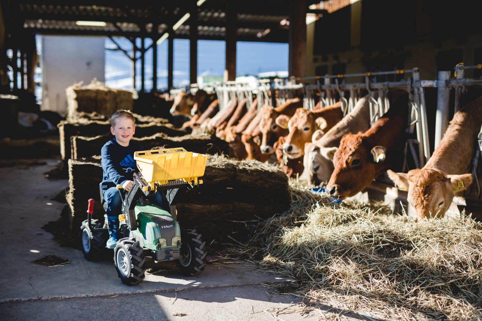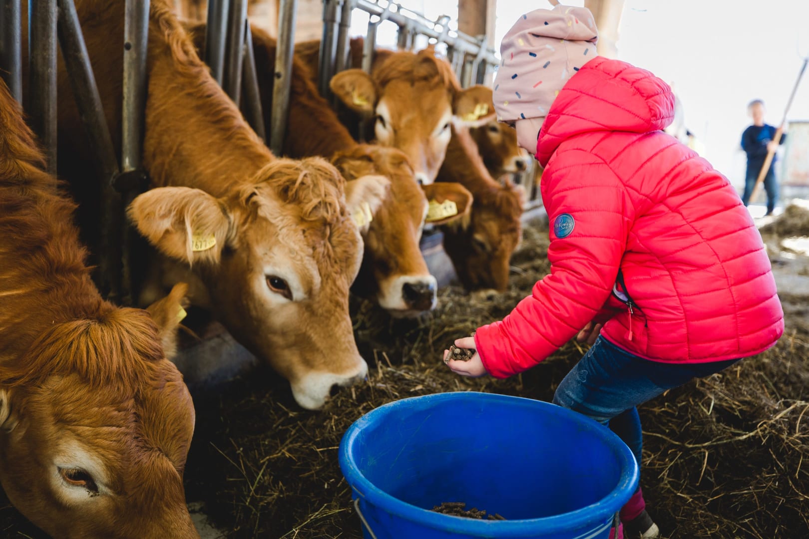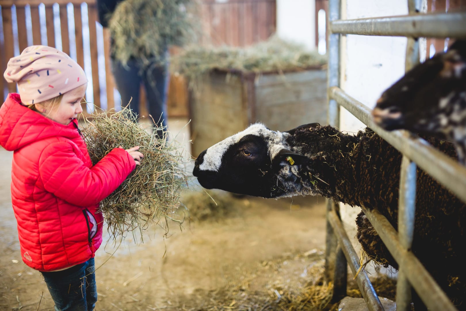 Der Tag beginnt mit einem gemütlichen Bauernhoffrühstück, dannach werden die Mutterkühe, die Pferde, Hasen, Hühner, Katzen und Hunde gefüttert. Die Eier von den Hühnern geholt und die Lämmer mit Streicheleinheiten versorgt.
