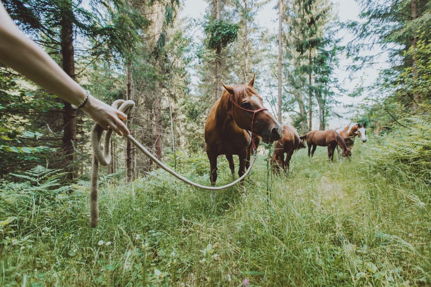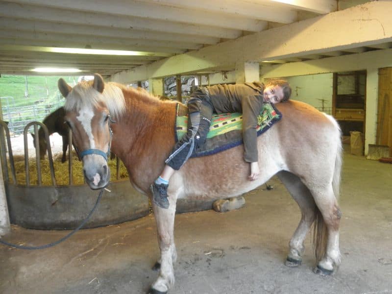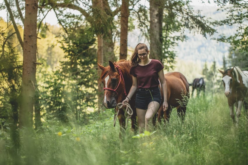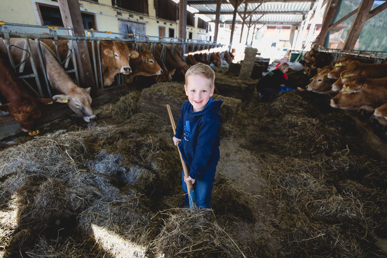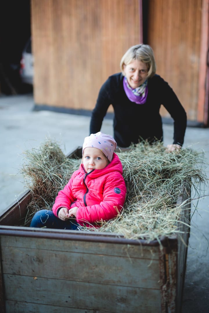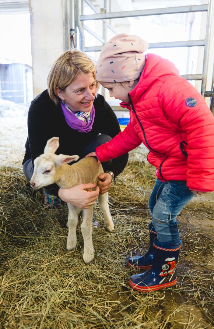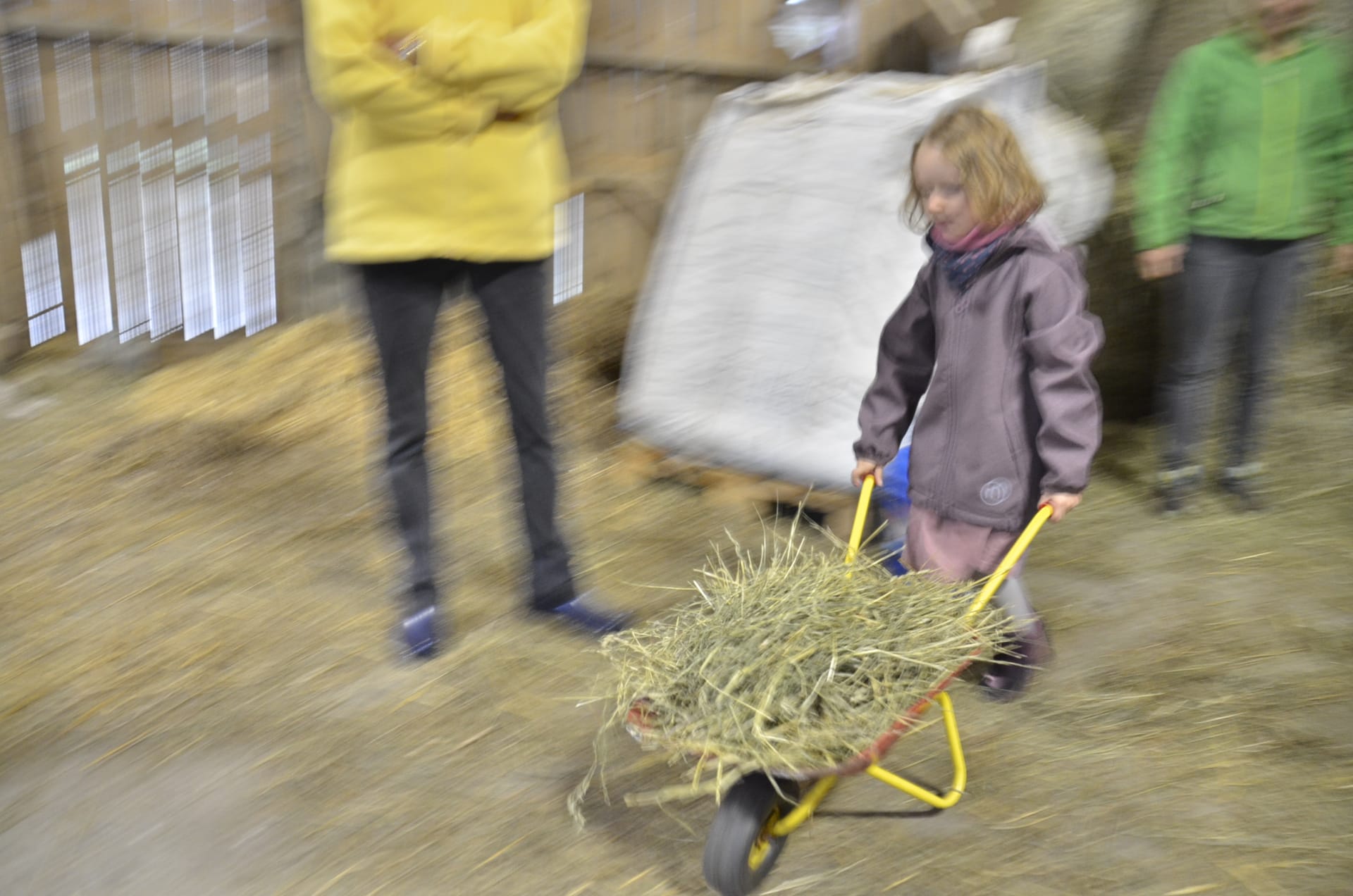 Der Tag beginnt mit einem gemütlichen Bauernhoffrühstück, dannach werden die Mutterkühe, die Pferde, Hasen, Hühner, Katzen und Hunde gefüttert. Die Eier von den Hühnern geholt und die Lämmer mit Streicheleinheiten versorgt.