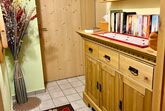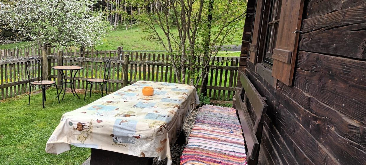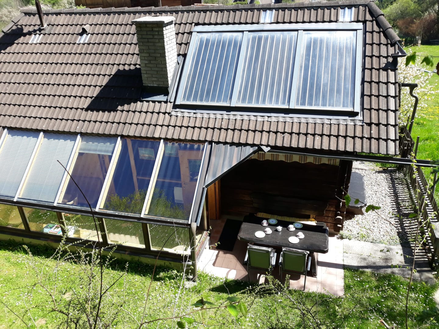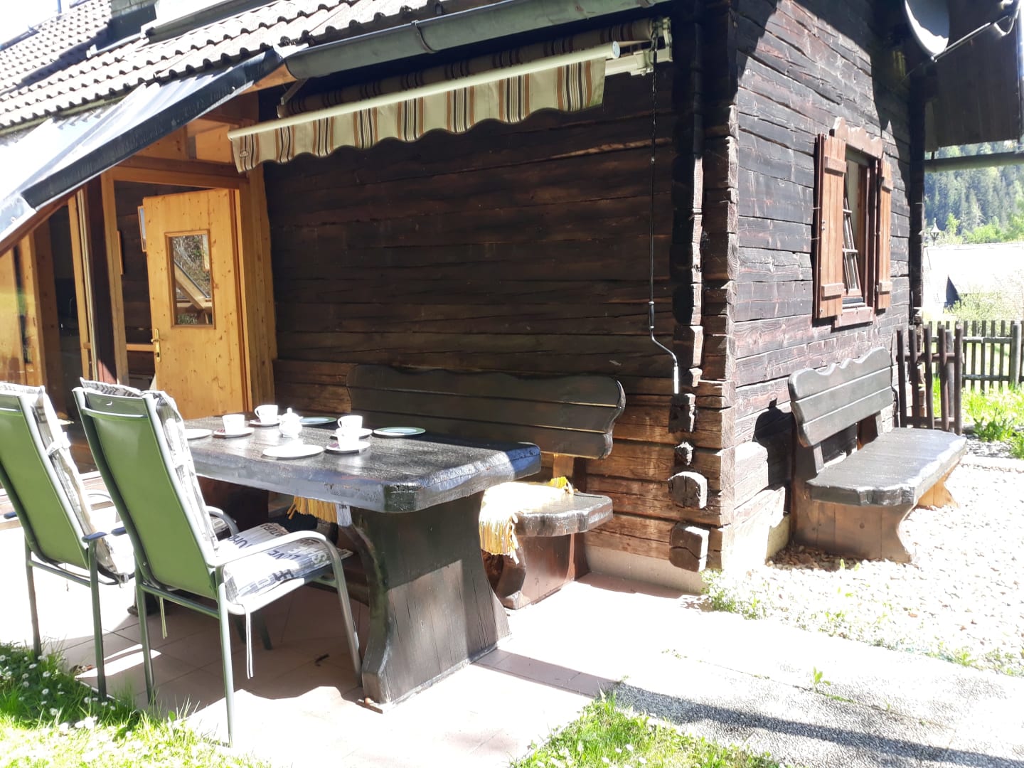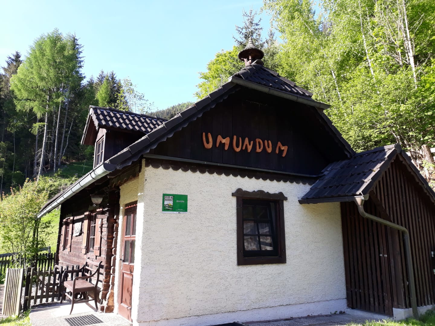 Gleich zwei Essecken laden zum Verweilen ein: In der Wohnküche und im gemütlichen Wintergarten mit Ausblick auf Wald, Wiese und Himmel. Verbunden sind die Räume über ein kleines Stiegenhaus mit Garderobe. Rund um die Hütte im Außenbereich und auf der Terrasse befinden sich Bänkchen und Tische zum Sonnsitzen.