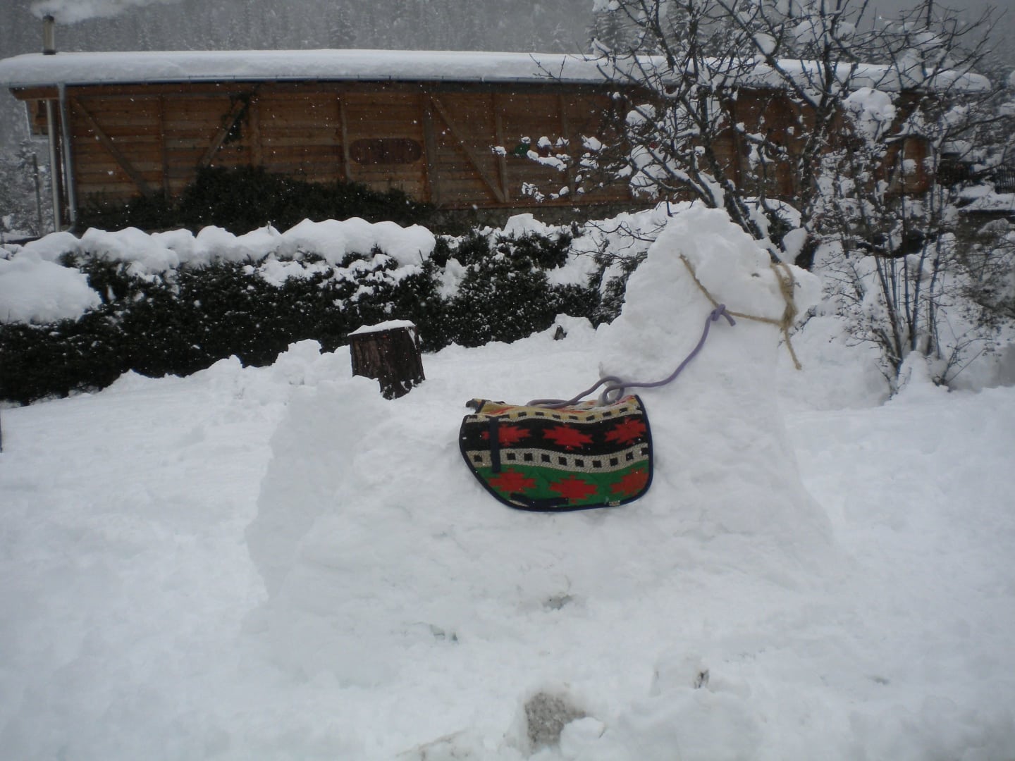 Da wir hier im Katschtal nur selten Nebel haben werden, unsere Gäste von der Morgensonne und glitzerndem Raureif geweckt. Dann heißt es für die Kinder: Nichts wie raus in die weiße Pracht und den neuen Bob ausprobieren. Die Pferde wiehern schon und wälzen sich im Neuschnee, während eine Katze neugierig Ausschau hält und unsere kleinen quirligen Hunde vollends im Schnee stecken bleiben.