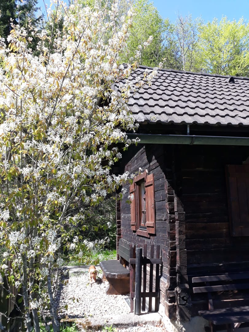 Im umzäunten Garten kann man ungestört die Hunde um die Hütte laufen lassen.