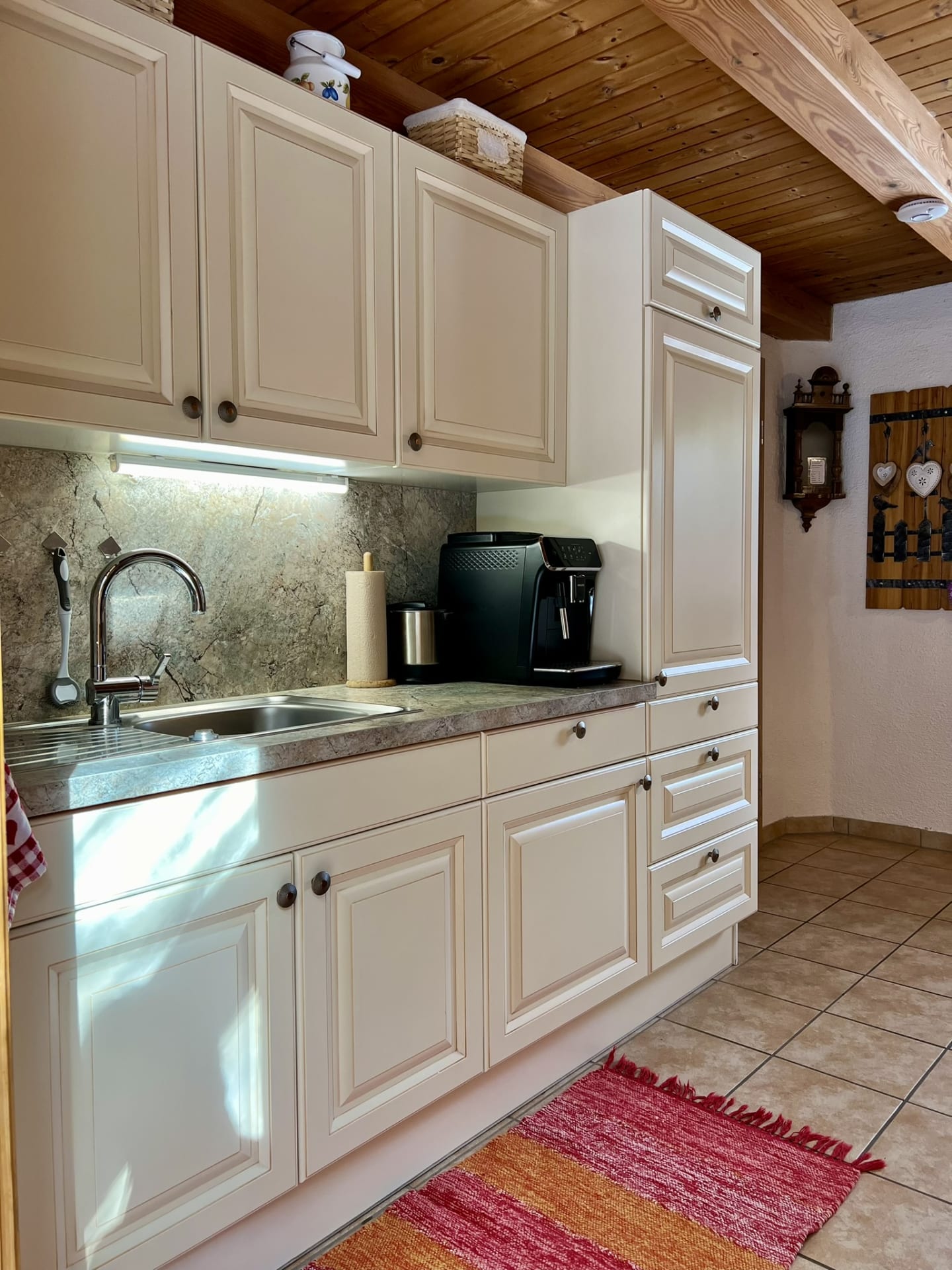 Nur gut, dass sich die Umundumhütte sowohl mit Heizkörpern über die Zentralheizung, als auch mit dem Kachelofen heizen lässt. Schließlich gibt es Gäste, die für ihr Leben gerne heizen und bei gut gefüllter Holzhütte und eisiger Kälte können sie das auch ausreichend oft tun. Danach kann man in kuscheliger Wärme im Wintergarten sitzen, gemeinsam Brettspiele spielen oder den Schneeflocken zuschauen, wie sie sich von oben weich und leicht auf die Scheiben legen und eine weiße Wattedecke entsteht.
