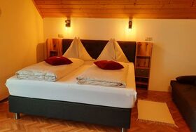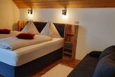 Sie besteht aus einem großen Wohn-/Schlafraum mit Doppelbett und Couch, komplett ausgestatteter Küche, separatem Schlafzimmer mit 3 Betten, Bad und WC getrennt, Abstellraum und Vorraum.