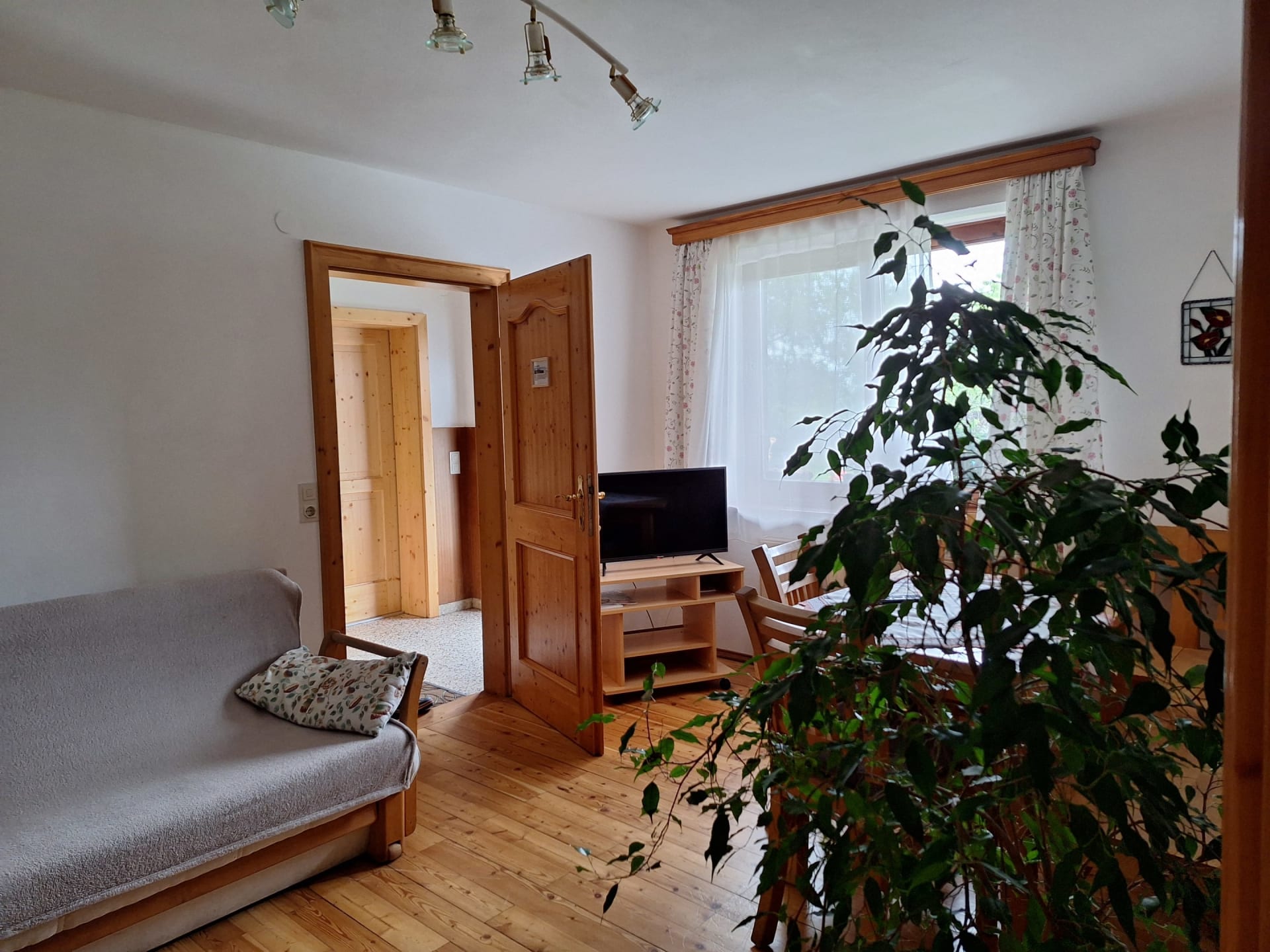 Zur weiteren Ausstattung gehören ein Fernseher, und auf Anfrage stellen wir gerne ein Kinderbett zur Verfügung.