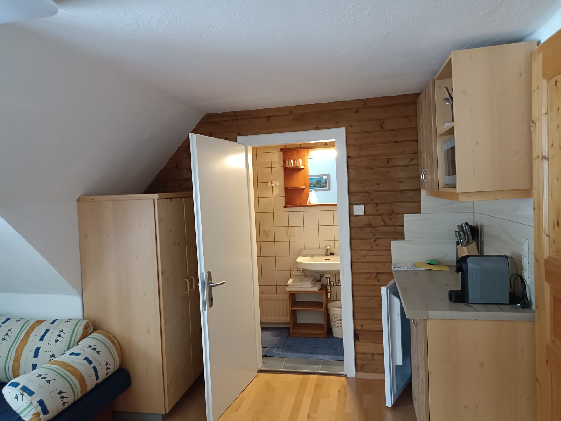 Entdecken Sie unseren charmanten Rückzugsort im historischen Haupthaus, ideal für Ruhesuchende. Auf großzügigen 25m² bietet dieses gemütliche Zimmer ein Höchstmaß an Privatsphäre und Komfort. Es ist die perfekte Wahl für Großeltern, die ihre Familie in den Ferienwohnungen besuchen und dennoch ihr eigenes, stilvolles Reich wünschen, oder für Jugendliche, die ihren persönlichen Freiraum im Urlaub schätzen. Ausgestattet mit einem luxuriösen Vollholzbett und einem komfortablen Schlafsofa, bietet es flexible Schlafmöglichkeiten für bis zu drei Personen. Dieses Zimmer ist selbstverständlich rauchfrei und lädt zum Entspannen ein.