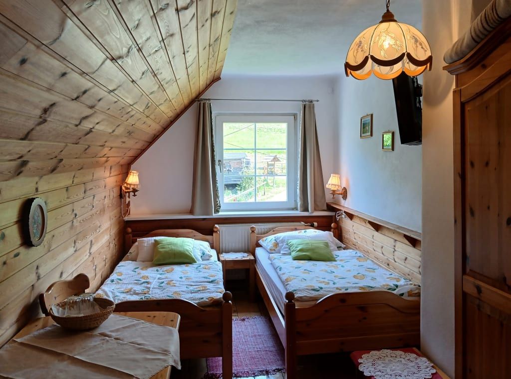 Im Zweibettzimmer erwarten Sie zwei getrennte Betten in Vollholz mit Dusche, WC und SatTV