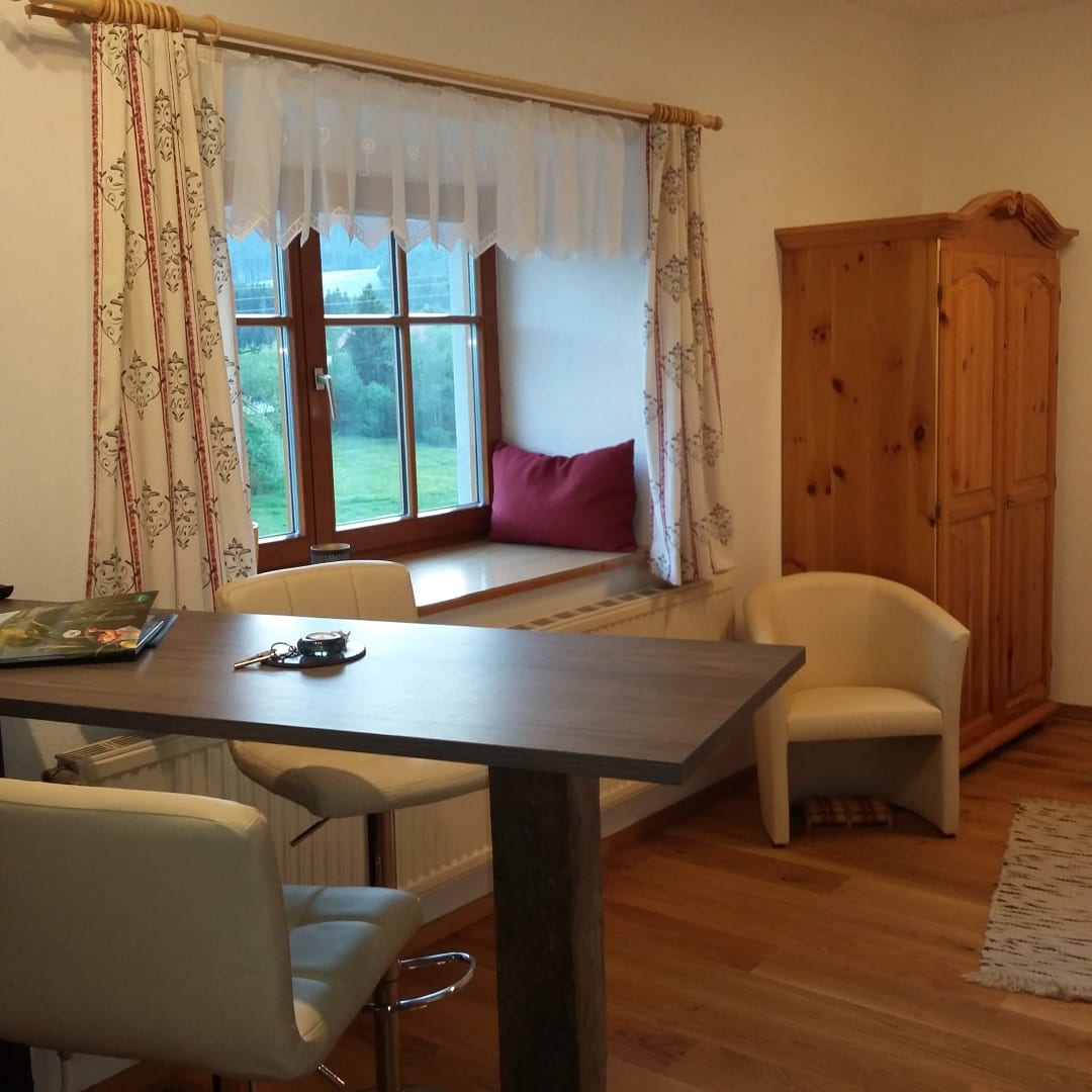 Erleben Sie pure Entspannung in unserem geräumigen und komfortablen Doppelzimmer, das sich im Haupthaus befindet. Genießen Sie den atemberaubenden Blick auf den malerischen Grasluppteich, den idyllischen Ursprungbach und die majestätische Berglandschaft direkt von Ihrem Fenster aus – für frische Bergluft und eine unvergleichliche Atmosphäre. Ein luxuriöses Kingsize-Bett garantiert Ihnen erholsamen Schlaf. Zur modernen Ausstattung gehören ein eigenes Bad mit Dusche, WC und Haarföhn, ein Flachbild-Sat-TV, Radio sowie kostenfreies High-speed WLAN. Für Ihre persönliche Kaffee- oder Teezubereitung stehen eine Kaffeemaschine und ein Wasserkocher bereit, ergänzt durch einen Kühlschrank für Ihre Getränke. Als Nichtraucherzimmer bietet es ein besonders angenehmes Raumklima für Ihr Wohlbefinden.