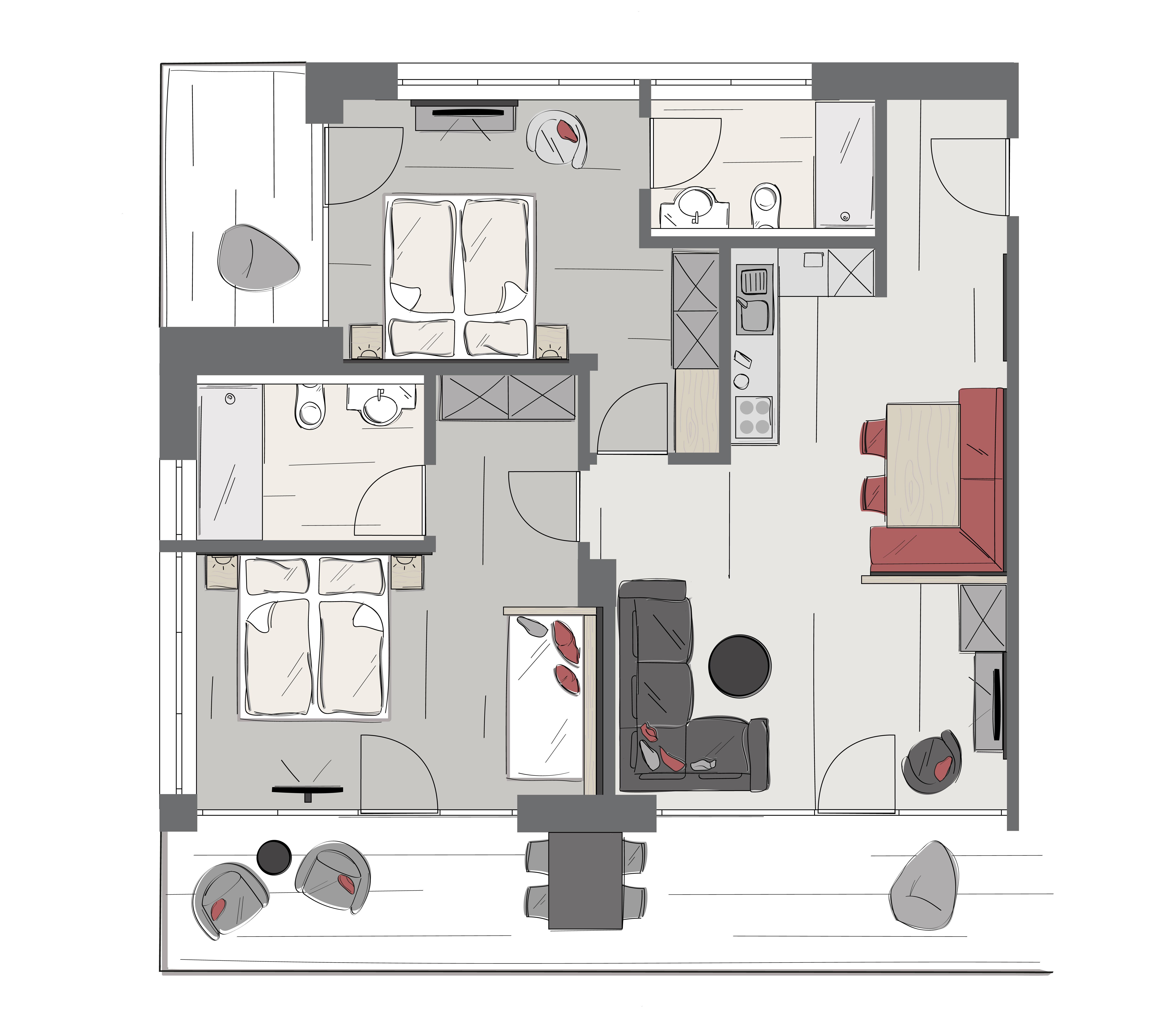 • 2 Schlafzimmer mit Doppelbett, Flat-TV, Balkonzugang