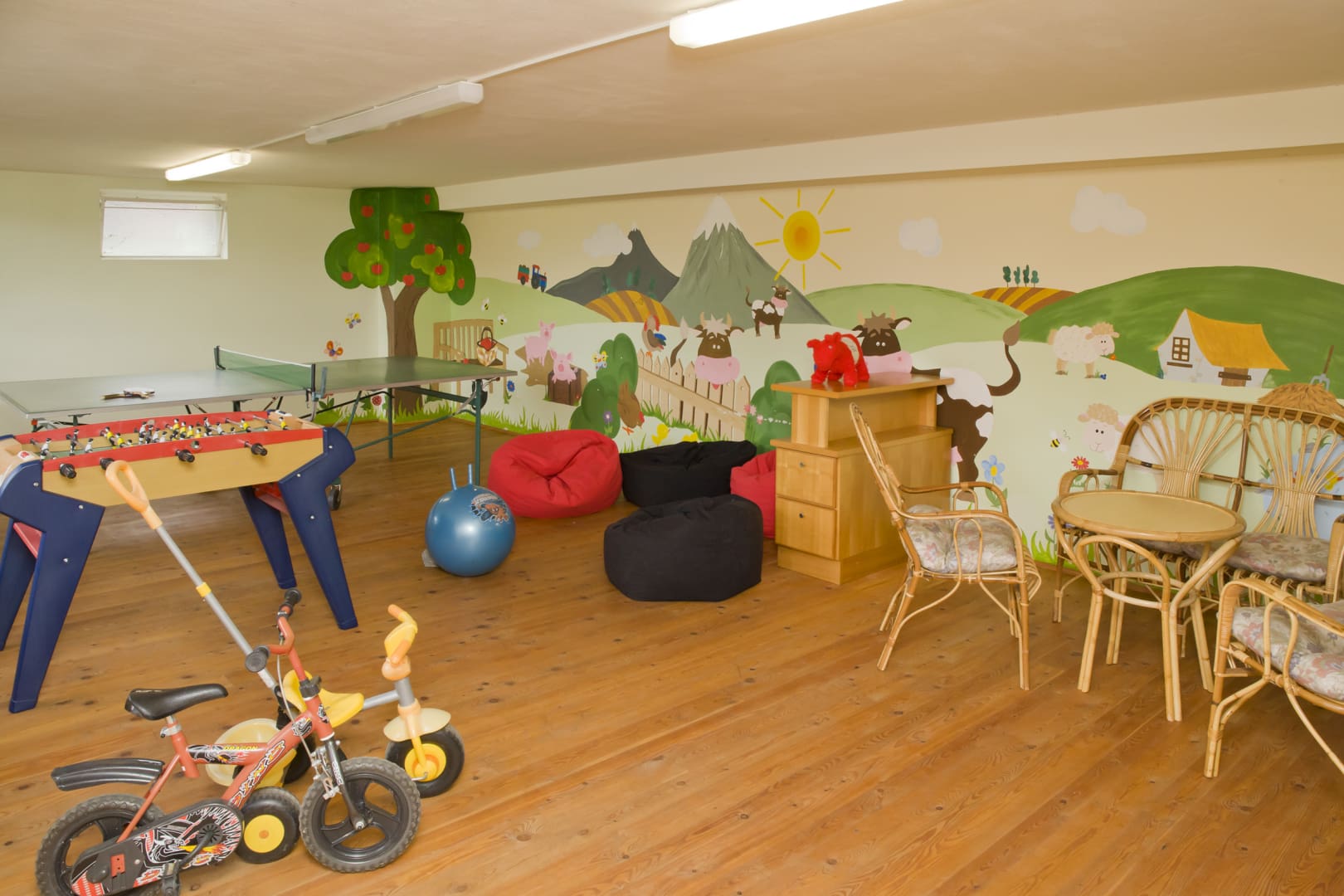 Wenn der Wettergott es einmal nicht so gut mit Ihnen meint, gibt es im nahe gelegenen Bauernhaus genug Möglichkeiten sich die Zeit zu vertreiben: Leseecke mit Gesellschaftsspielen, Sauna, Indoor-Spielraum mit Tischtennis.