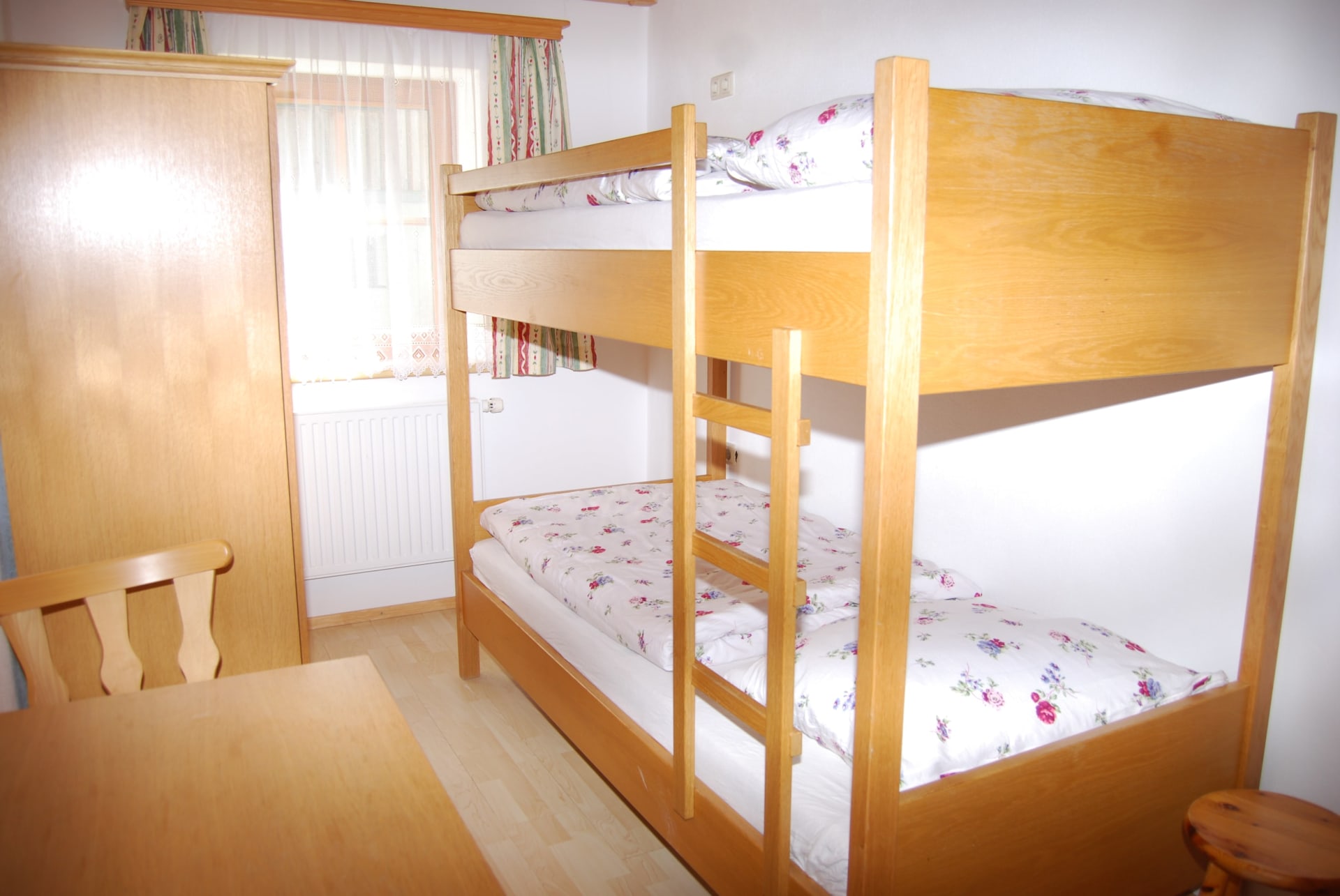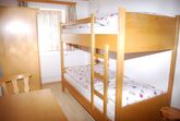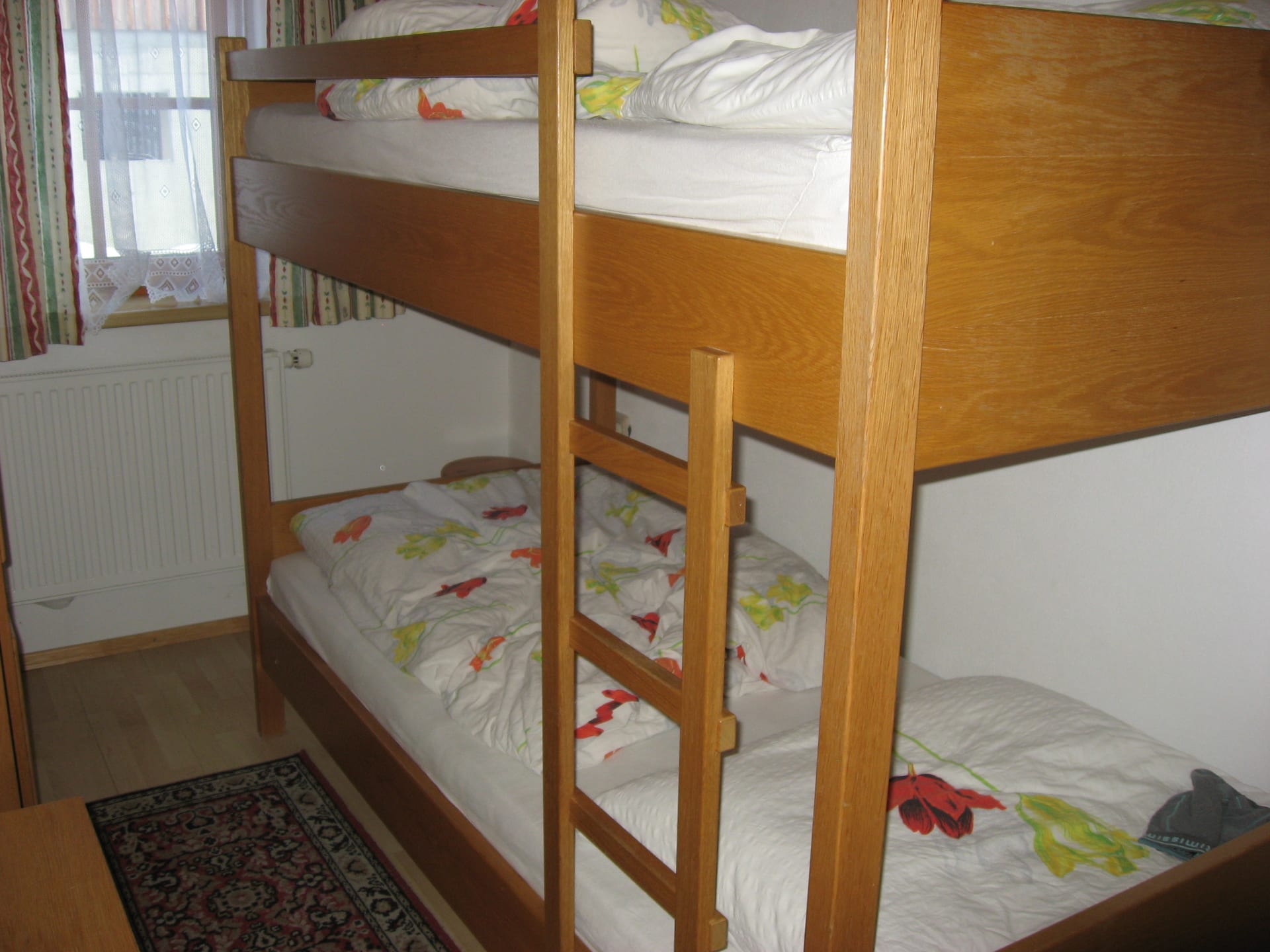 Ebenerdig gelegene Ferienwohnung für bis zu 4 Personen mit zwei Zimmern. Im Kinderzimmer gibt es ein Stockbett. Komplett ausgestattete Küche mit Sitzecke.