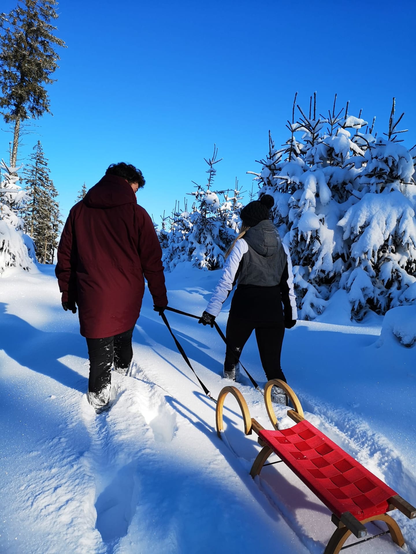 Genießen Sie klare Wintertage am Land: verschneite Wiesen, Winterwälder, gefrorene Bäche und Rodelhänge bietet die Natur. Ihr Tag startet mit einem großen Frühstück mit vielen regionalen Schmankerln, aus der Himbeernestküche kommt (fast) täglich ein hausgemachter Frühstückskuchen, der gerne auch zum Nachmittagskaffee genascht werden kann!