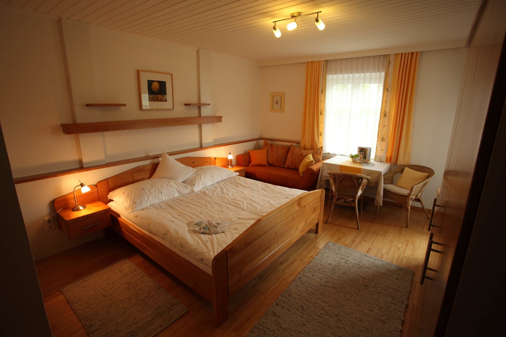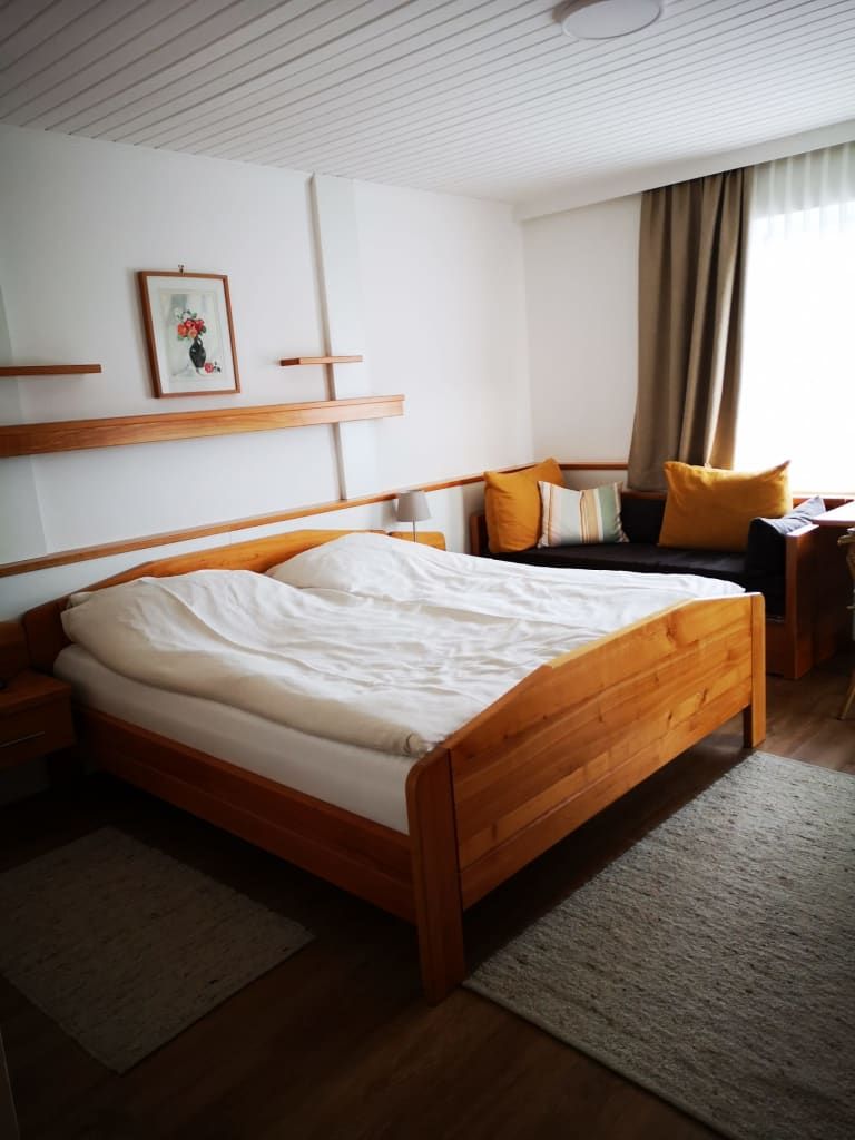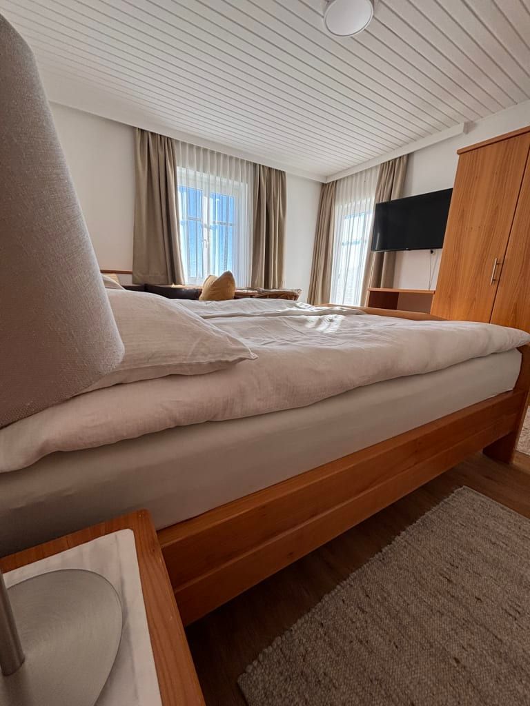 Klein und fein und wunderbar gemütlich ist unser Doppelzimmer Nummer 5 das einzige Zimmer ohne Balkon, dafür aber mit besonders großzügigem Bad. Mit dem naturfarbigen Herzerl am Schlüsselanhänger ist ein helles, freundliches Zimmer mit natürlichem Ambiente. Direkt neben das Queen Size Bett kann bei Bedarf ein Kinderbett dazugestellt werden, es entsteht so ein Familienbett.
