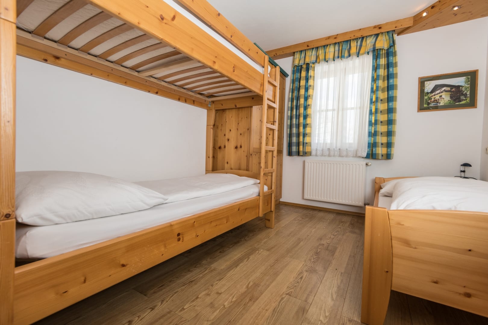 2 bis 5 Personen / 50m², Wohnküche, 1 Schlafzimmer mit Doppelbett und 1 Schlafzimmer mit einem Einzelbett und Stockbett, Bad mit DU/WC, Balkon;