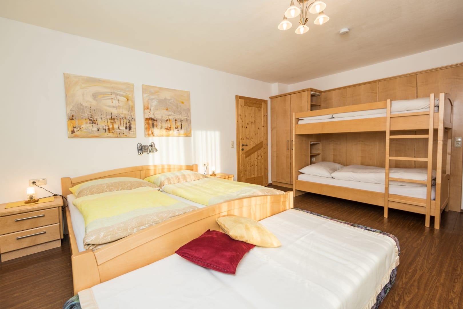 2 bis 7 Personen / 90m², Wohnküche, 1 Schlafzimmer mit Doppelbett und Zusatzbett, 1 Schlafzimmer mit einem Doppelbett und Stockbett, Bad mit DU/WC und Badewanne, 1 WC extra, Balkon;
