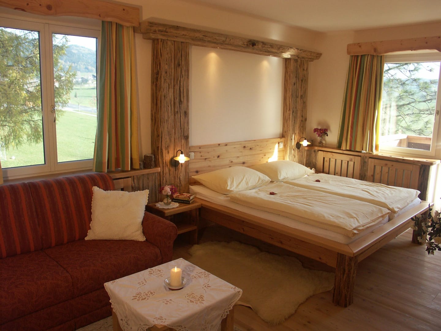 In unseren Almenland-Zimmern wohnen Sie im eleganten Landhaus-Ambiente. Die Zimmer bieten Vollholzmöbel, geölte Lärchendielen-Böden und viele kreative Wohlfühldetails. Jedes Zimmer hat einen eigenen Balkon, die meisten mit Golfplatzblick.