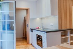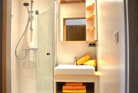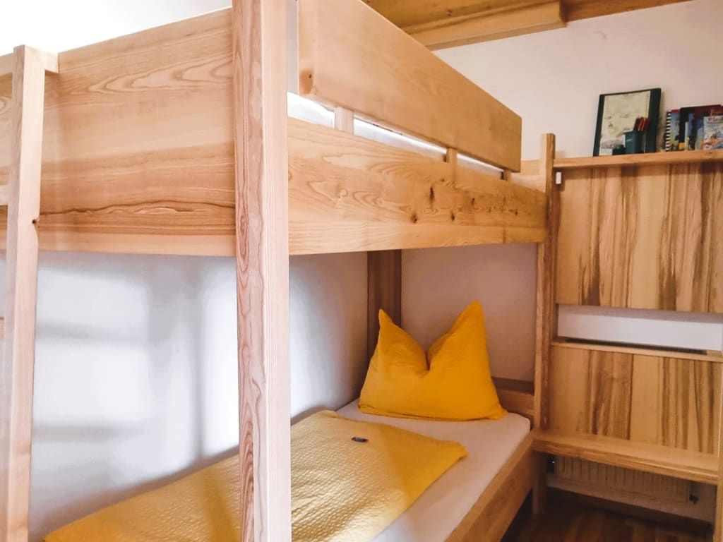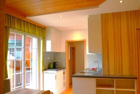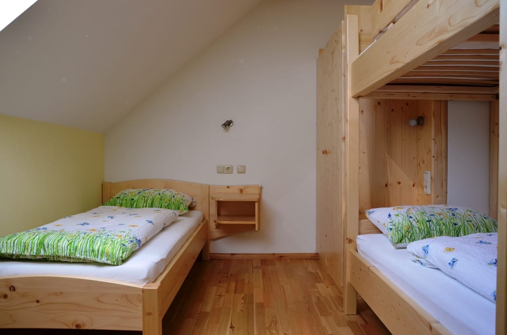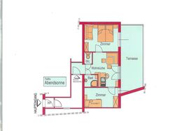 In der Ferienwohnung Abendsonne gibt es folgende Räumlichkeiten: 2 voneinander getrennten Schlafzimmer (Kinderzimmer mit Stockbett), Wohnküche mit direktem Zugang zur Terrasse, Dusche, WC getrennt.