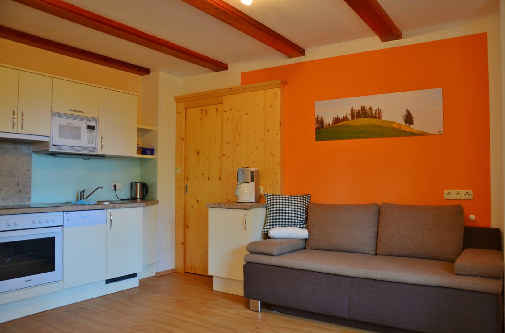 Die Parkettböden und Holzmöbel verleihen eine heimelige Atomsphäre.