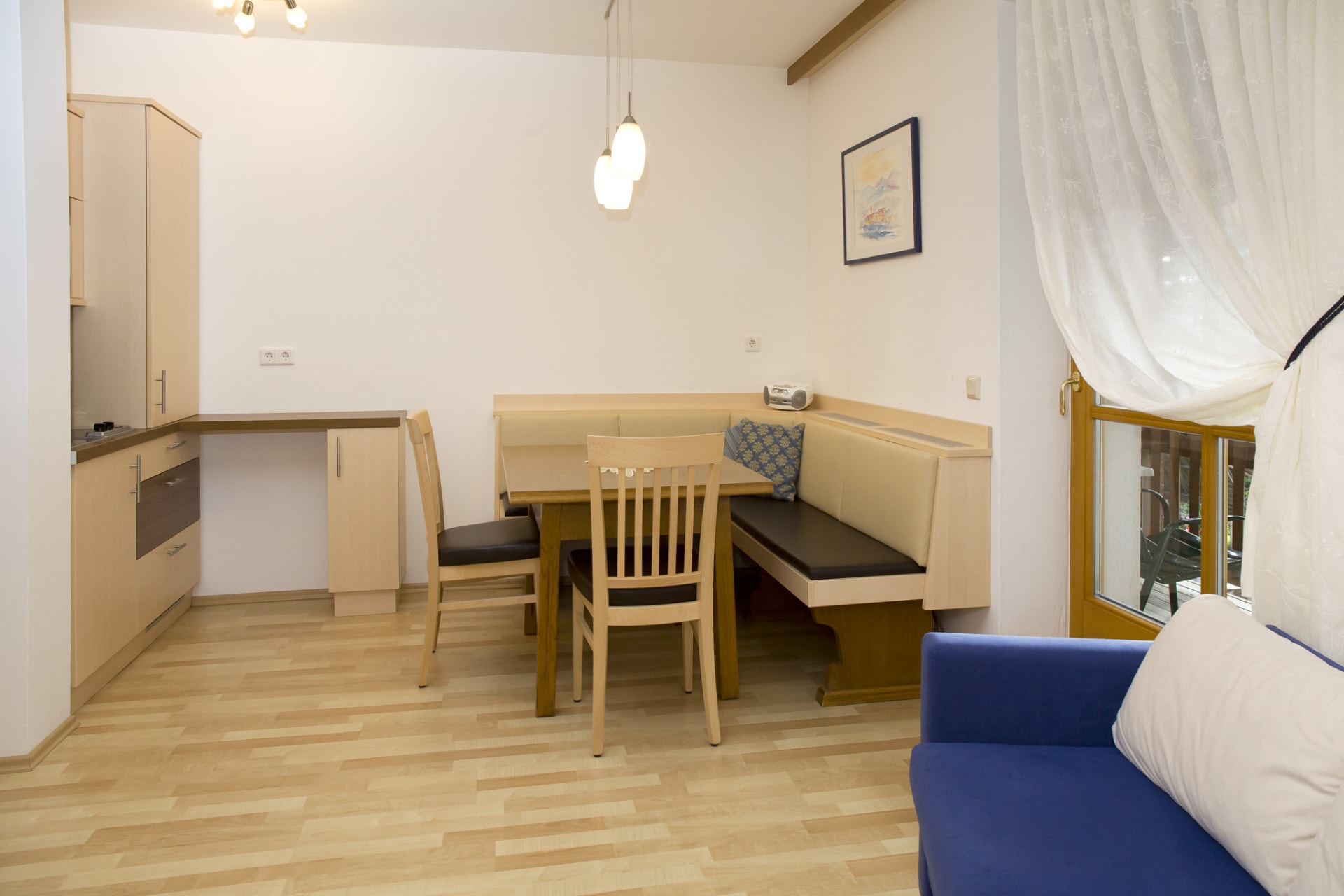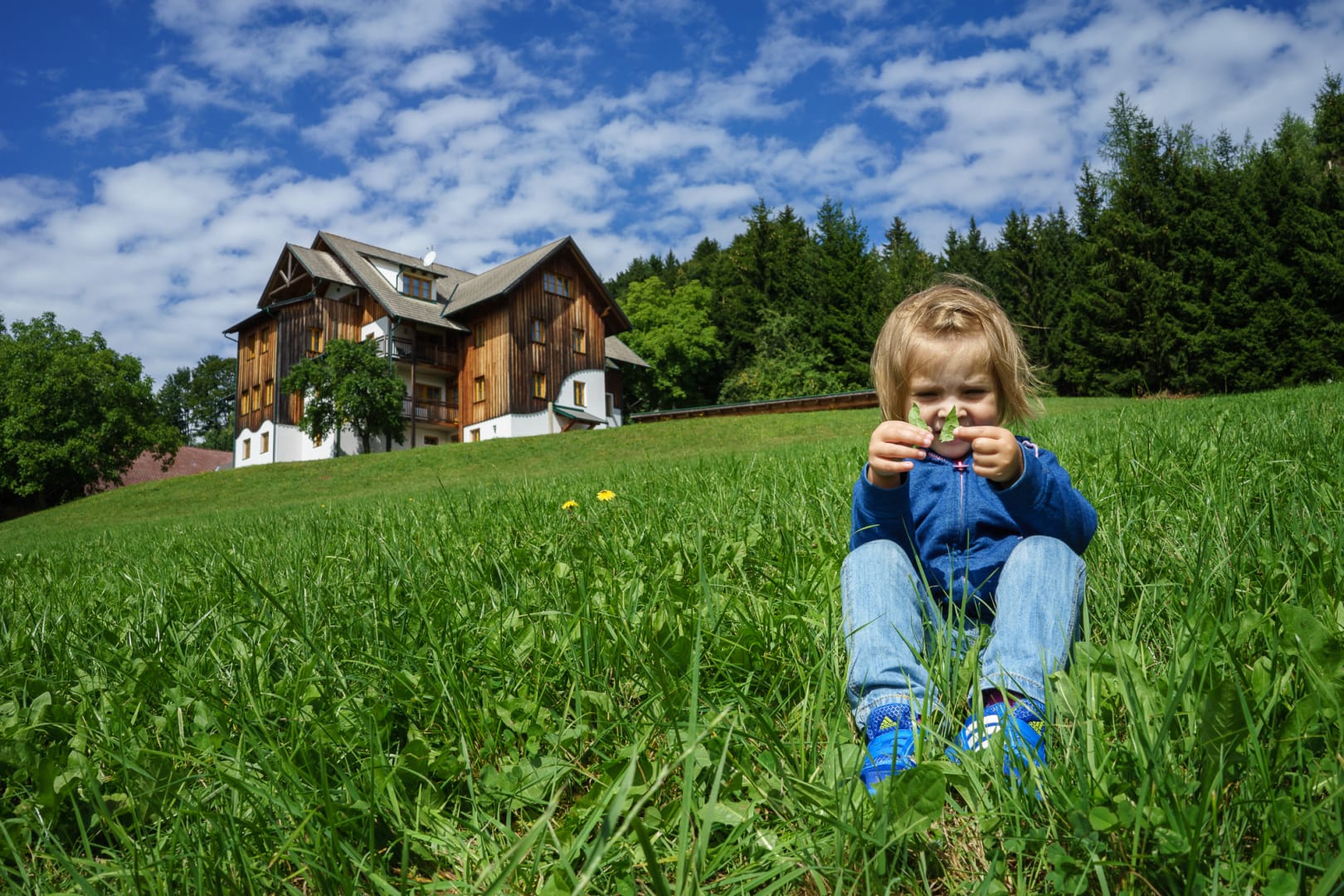 Ein behaglicher Wohnraum mit kleiner Kochecke bietet alles, was man braucht. Dazu ein gemütliches Schlafzimmer, Dusche/WC mit Fön, SAT-TV und Radio. Am Balkon genießt du die frische Landluft und den Blick ins Grüne – und hast dabei den Spielplatz immer im Blick – perfekt zum Abschalten und Durchatmen.
