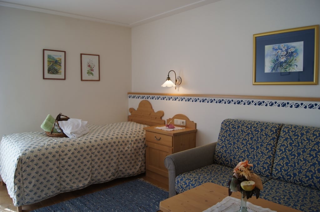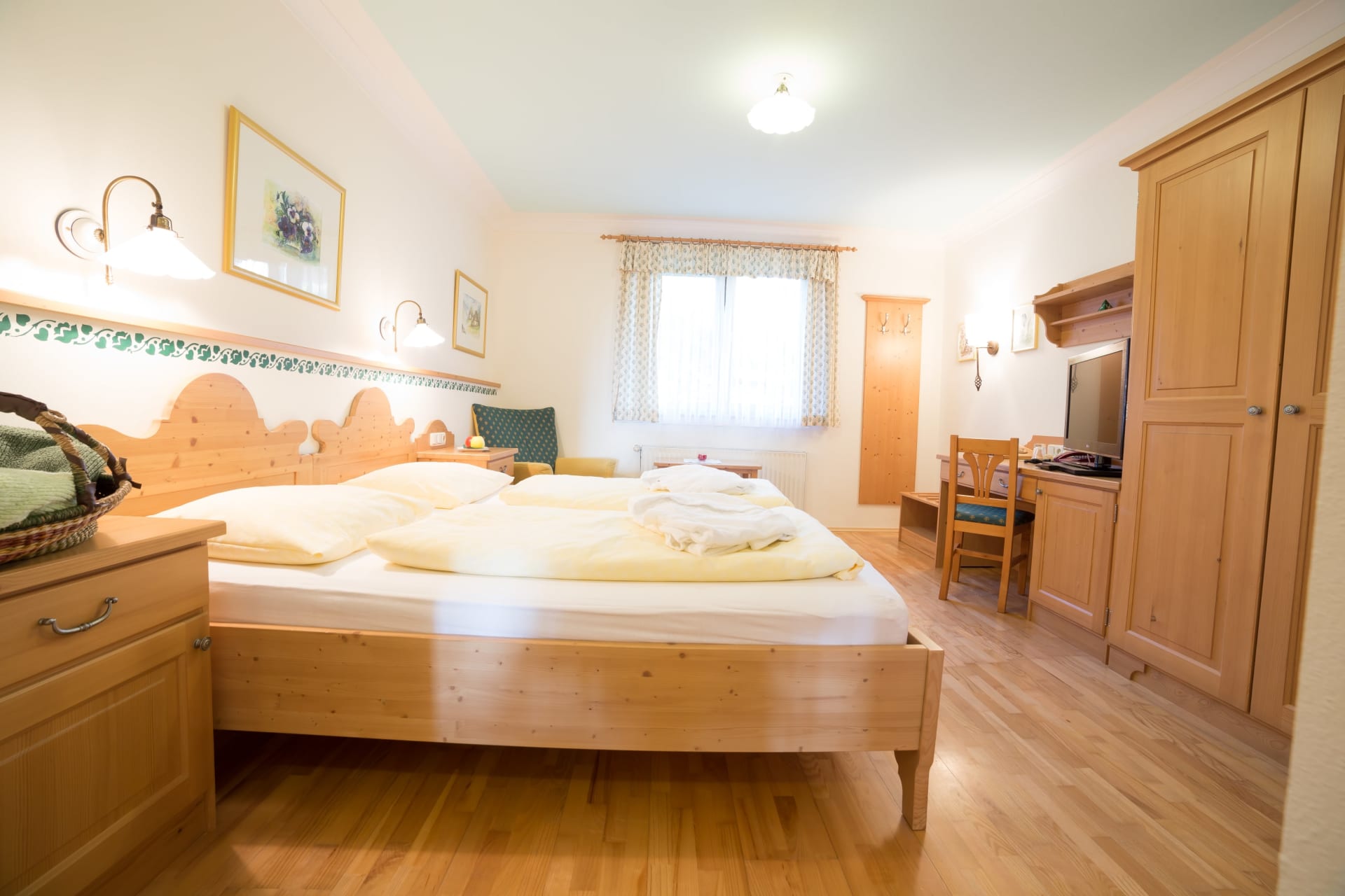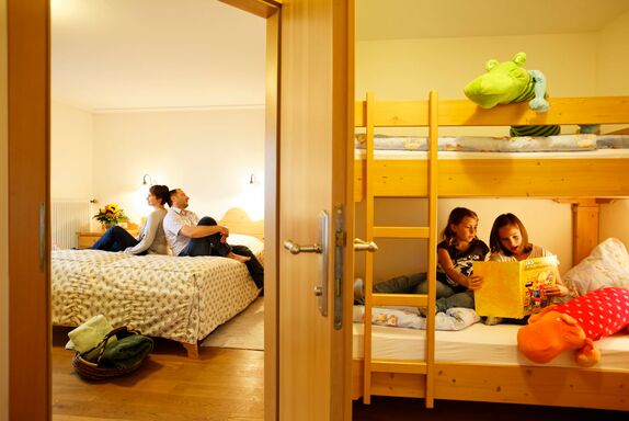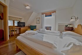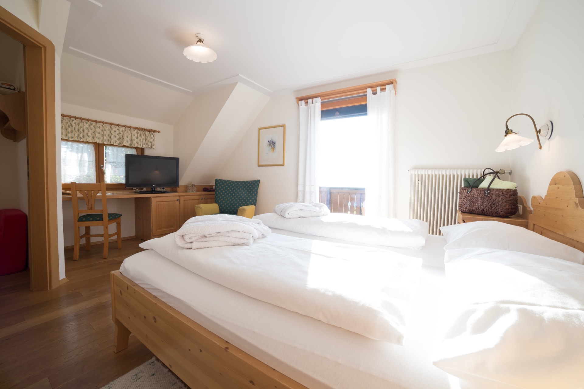 großes Doppelzimmer mit getrenntem Kinderschlafzimmer, Badezimmer mit Badewanne, herrliche Aussicht auf die Alpen
