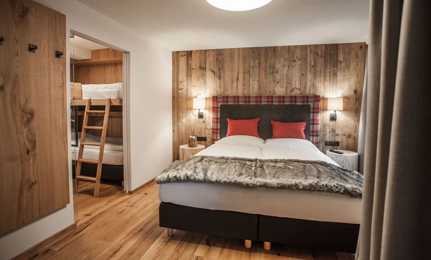 Die Wohnung wurde im Frühjahr 2018 umgebaut und hat jetzt auch eine großzügige, eigene Sauna mit Dusche! Sie ist für 2 bis 6 Personen geeignet. Ost- und westseitig gelegen, hat sie zwei Balkone und wurde sehr liebevoll und hell gestaltet! Weiter verfügt unser Apartment Sestriere über einen großzügigen Wohnraum mit Couch, Küche und Esstisch. Zwei Doppelzimmer, 2 Duschen/WC, ein separates WC und ein eigenes Kinderzimmer mit Stockbett!