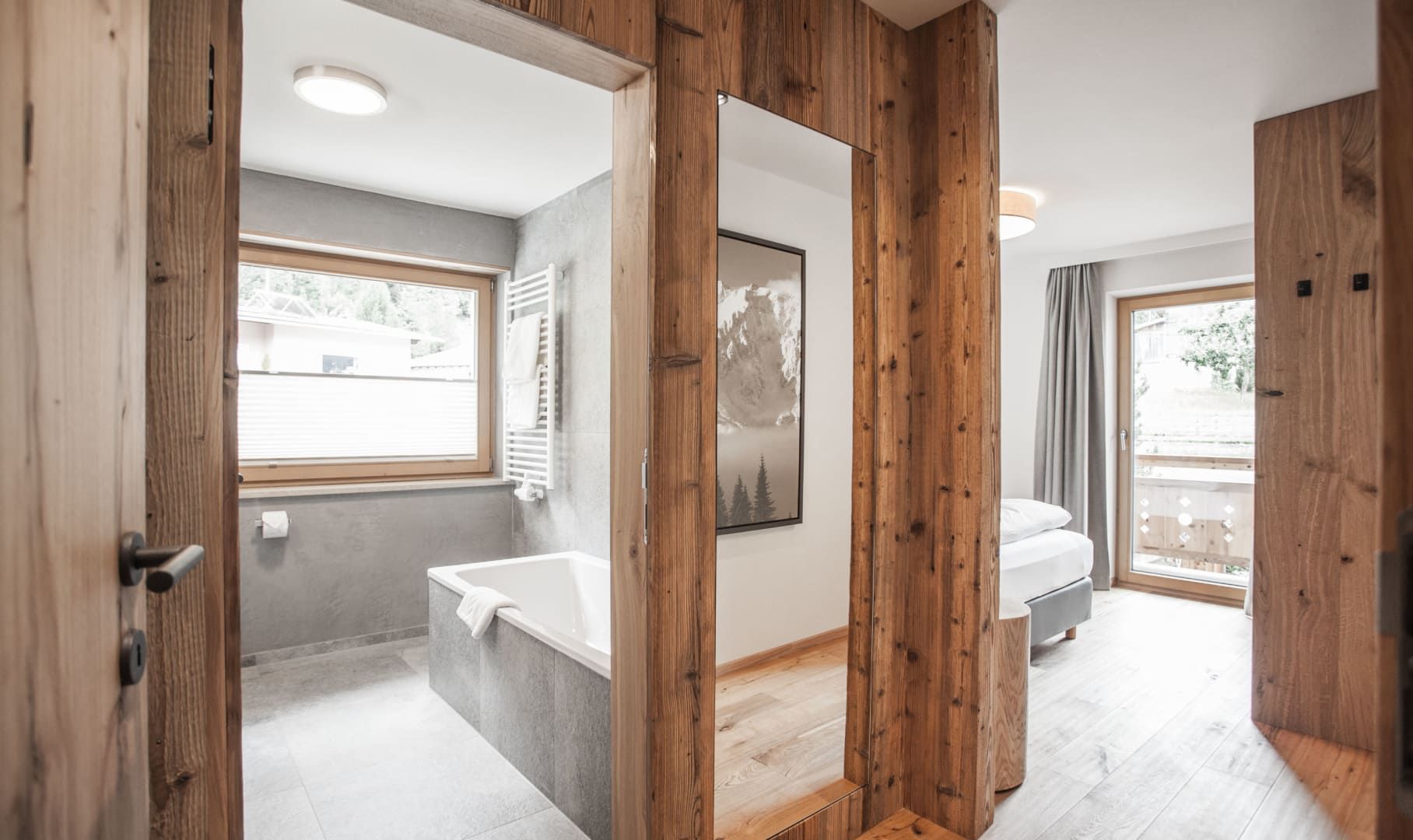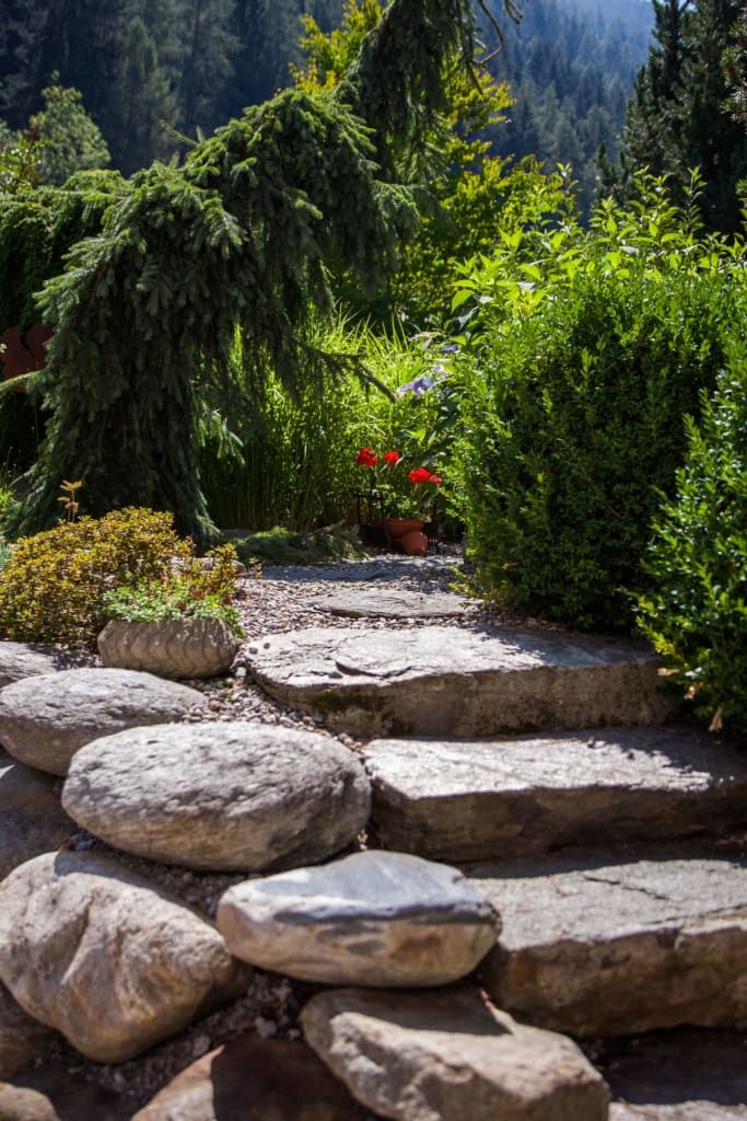 Sie können barfuß den Rasen im anliegenden Garten begehen. Der Blick auf die Bergwelt bringt Ruhe und Etspannung und ist auch zu Hause noch oft präsent.