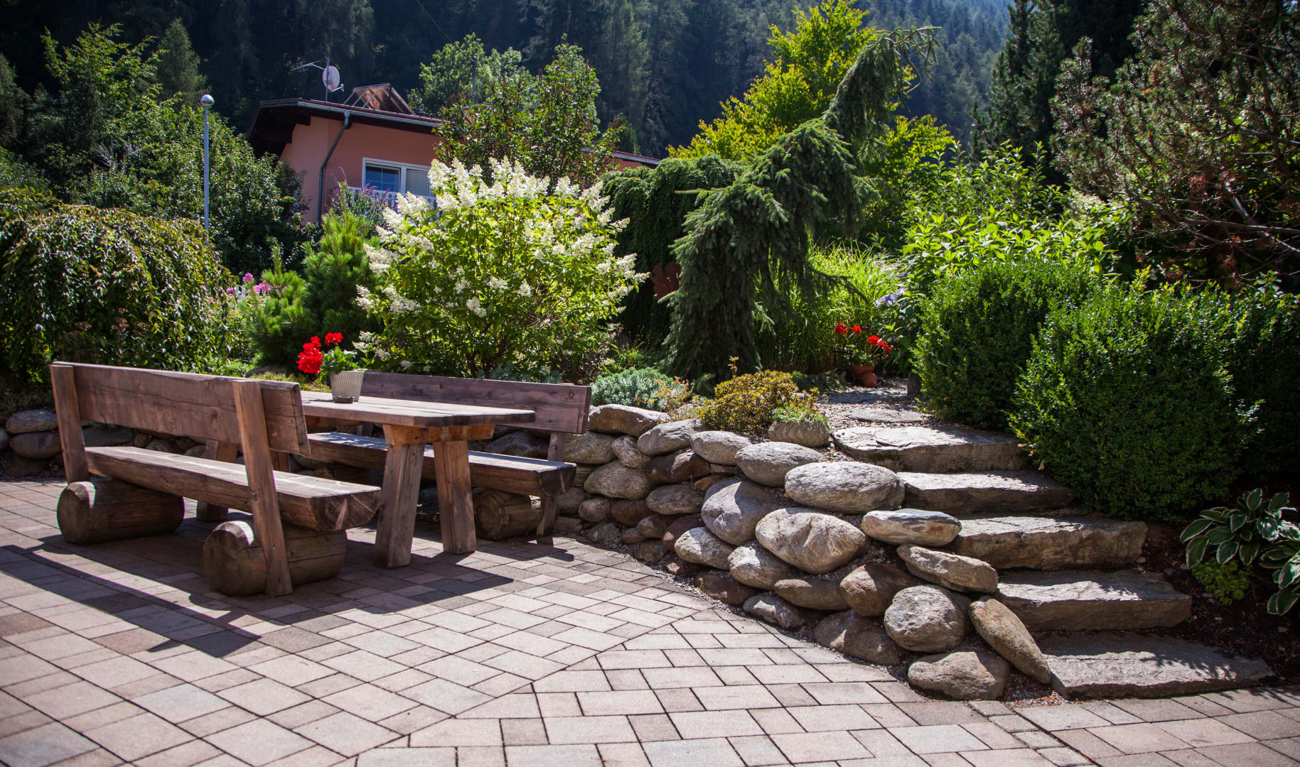 Wohltuend ist der Blick – in den Garten mit plätscherndem Brunnen und auf die imposanten Berge des vorderen Pitztales. Entspannen und Erleben!