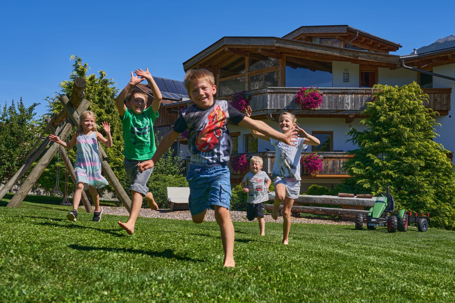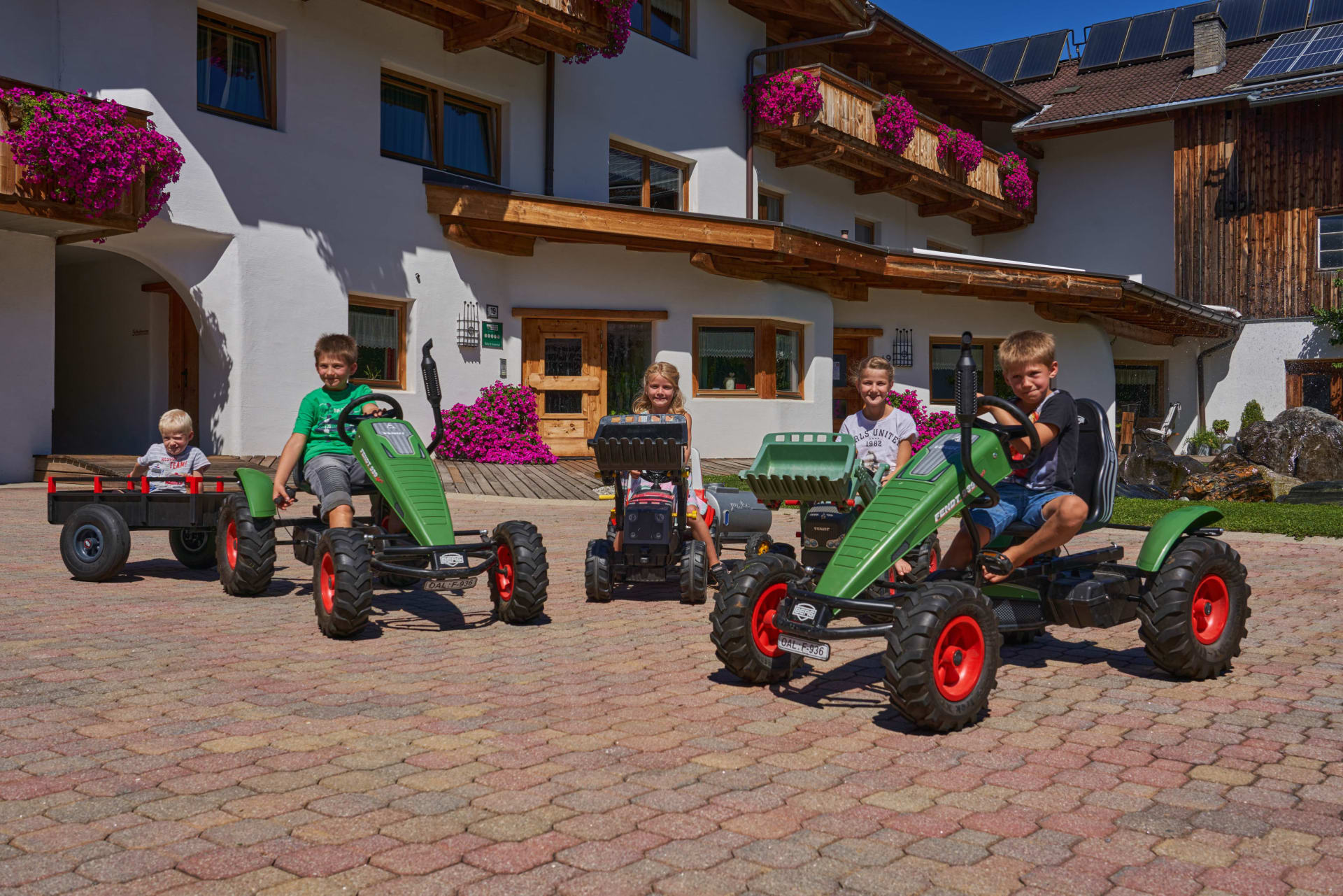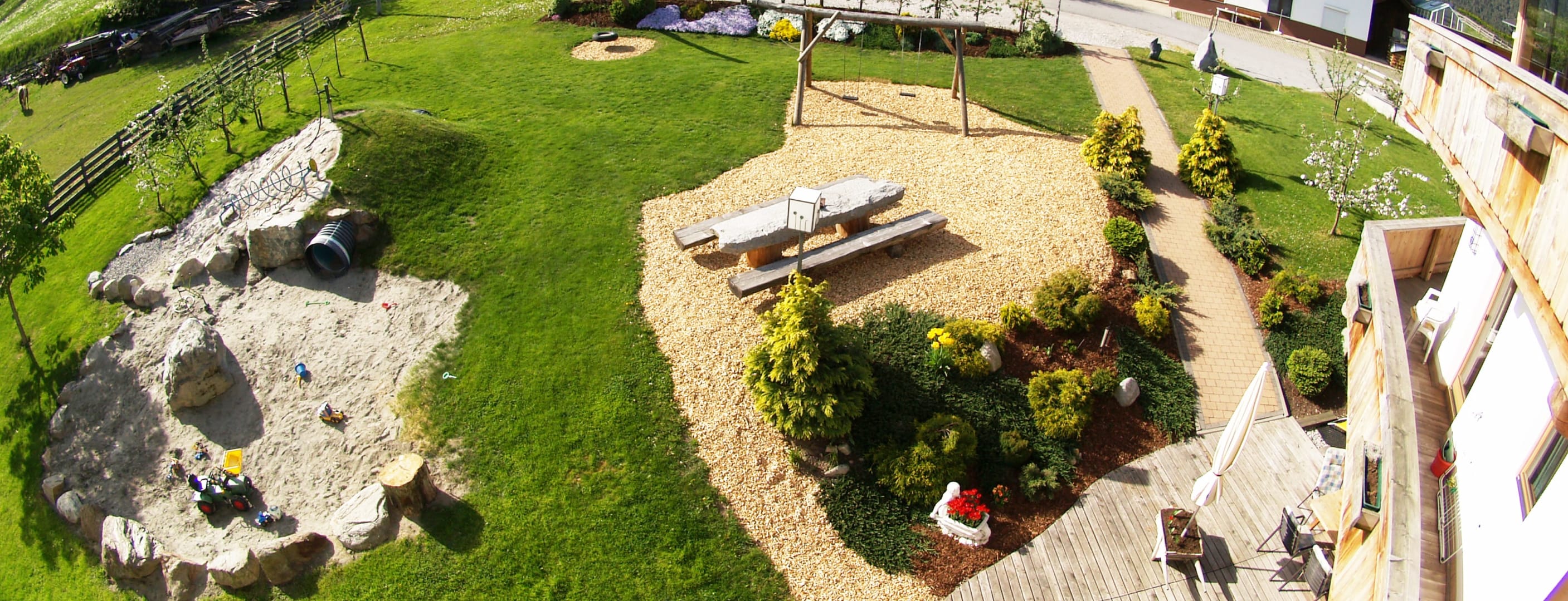 Das Wohl unserer Gästekinder ist uns eine Herzensangelegenheit. In der Garage erwarten euch Go Karts, Trettraktoren, Skateboards und noch weitere Fahrzeuge. Am großen Erlebnisspielplatz findet ihr viel Platz zum Toben, Schaukeln, eine Seilbahn, ein Trampolin, einen groß angelegten Sandkasten mit einer Wasserpumpe zum Matschen.