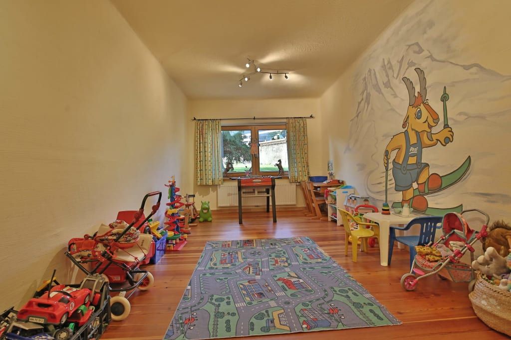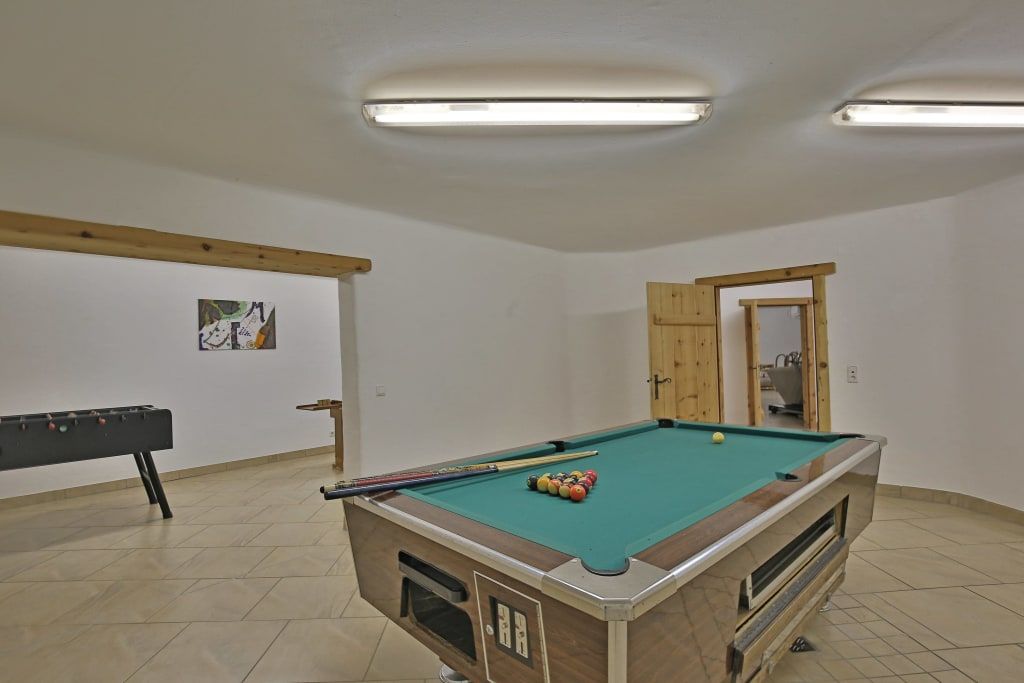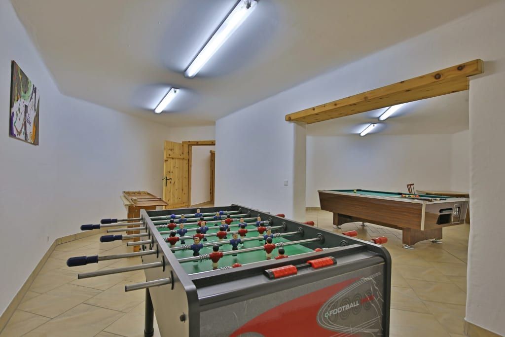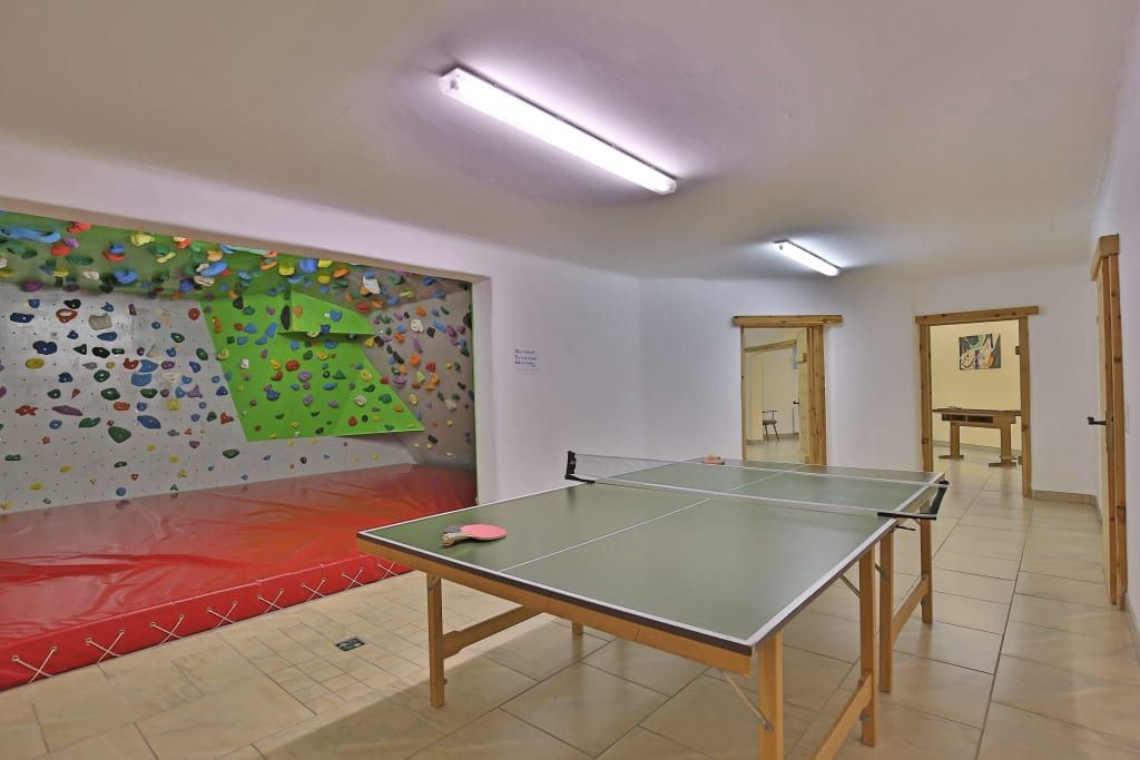 Bei Regenwetter verbringen die meisten unserer lieben Gästekinder die Zeit im Spielzimmer oder im Spielekeller mit Boulderraum, Tischtennistisch, Billardtisch und Tischfußball.