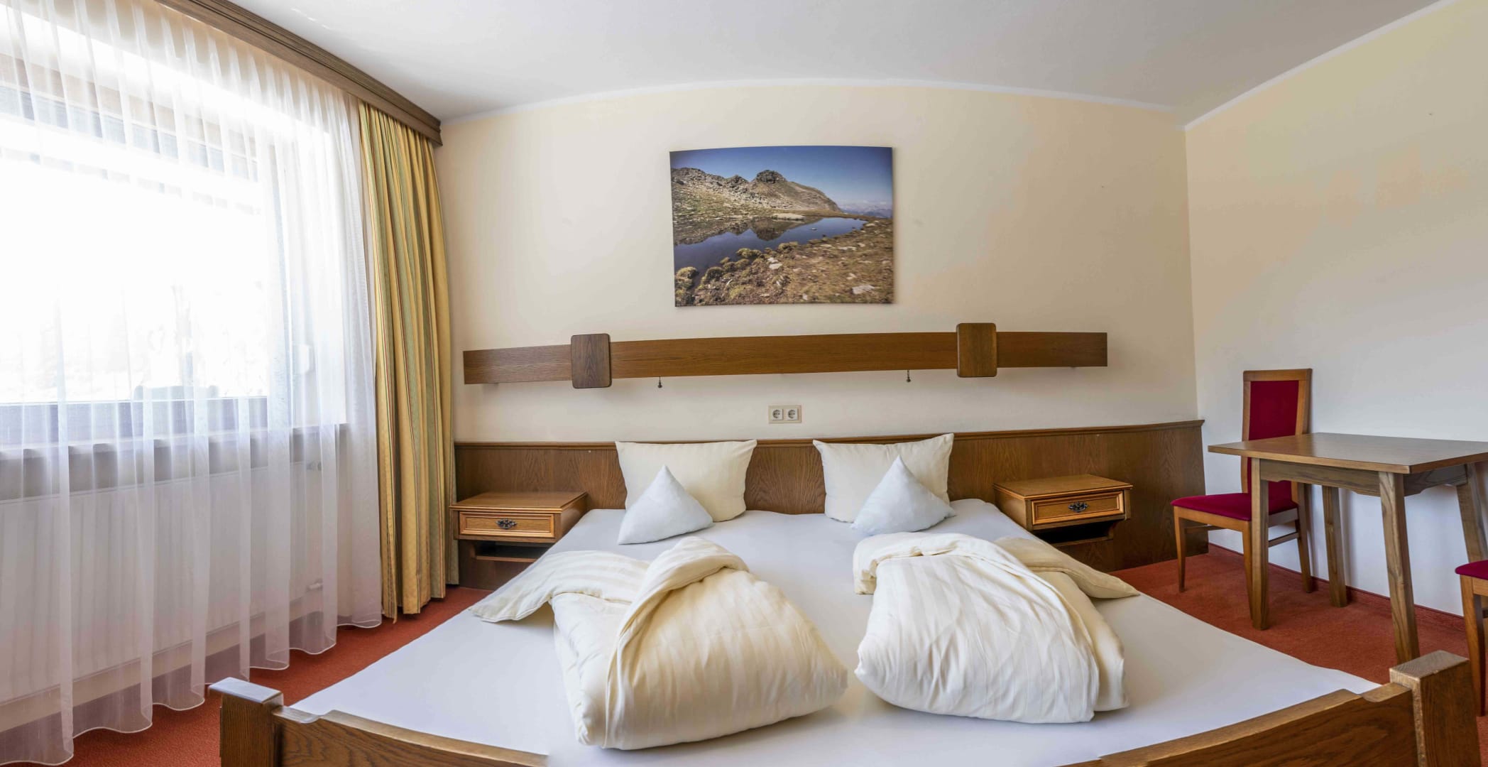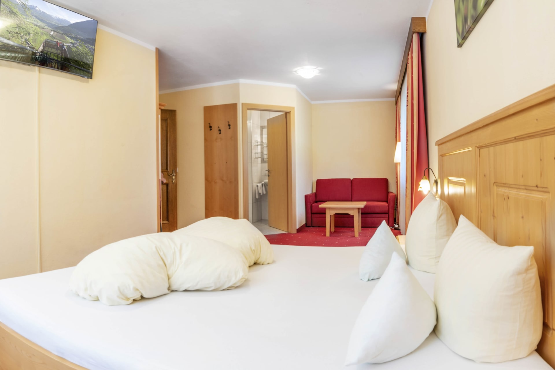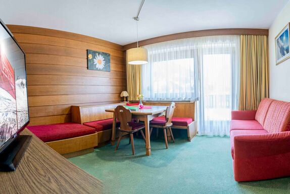 Diese Wohnung mit wunderschönen Ausblick ins Tal besteht aus einem großen Wohn- Schlafraum, 1 Schlafzimmer, einer Küche, SAT TV, Bad und WC und großer Terrasse. Zimmer 1 ist ein geräumiges Doppelzimmer (Dusche/WC/SAT/TV) und liegt Wohnung 1 direkt gegenüber.