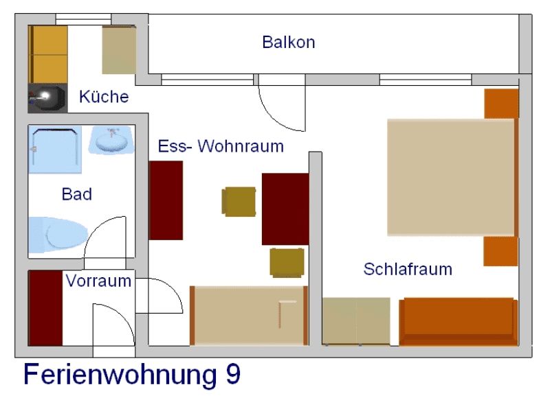 Die 10 Ferienwohnungen bieten genug Platz für zwei bis neun Personen. Alle Ferienwohnungen sind mit SAT/TV, Bad/Dusche und WC sowie einer Küche ausgestattet.