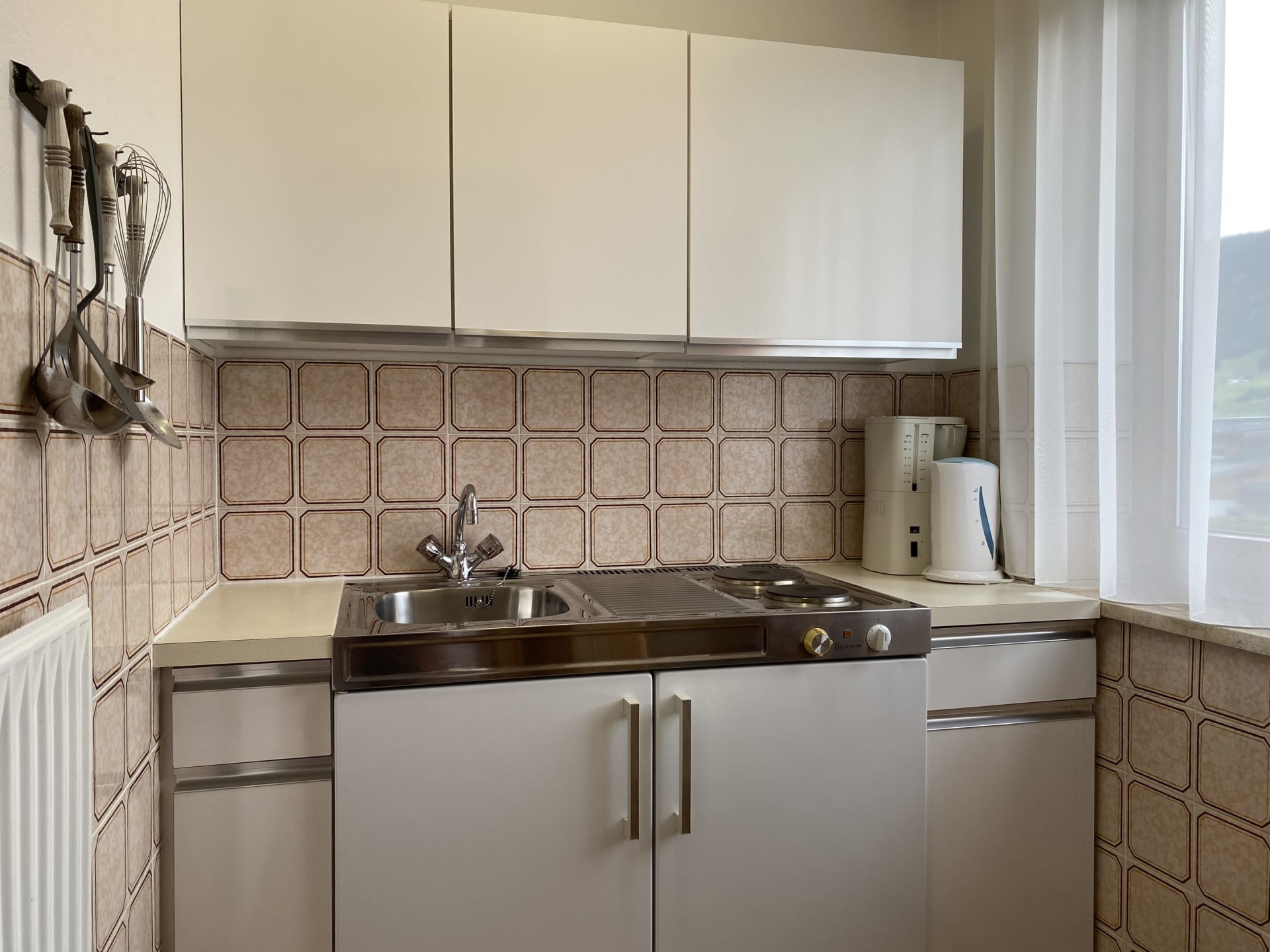 Diese Wohnung mit herrlichen Talblick und Sonne aus dem Süden besteht aus einem großen Wohn- Schlafraum(3 Schlafplätze), 1 Schlafzimmer, einer Küche, SAT TV, Bad und WC und großem Balkon.