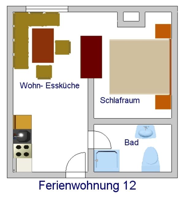 Diese Wohnung besteht aus einem großen Wohn- Schlafraum, 1 Schlafzimmer, einer Küche, SAT TV, Bad und WC und großem Balkon.