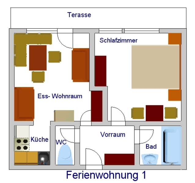 Die 10 Ferienwohnungen bieten genug Platz für zwei bis neun Personen. Alle Ferienwohnungen sind mit SAT/TV, Bad/Dusche und WC sowie einer Küche ausgestattet.