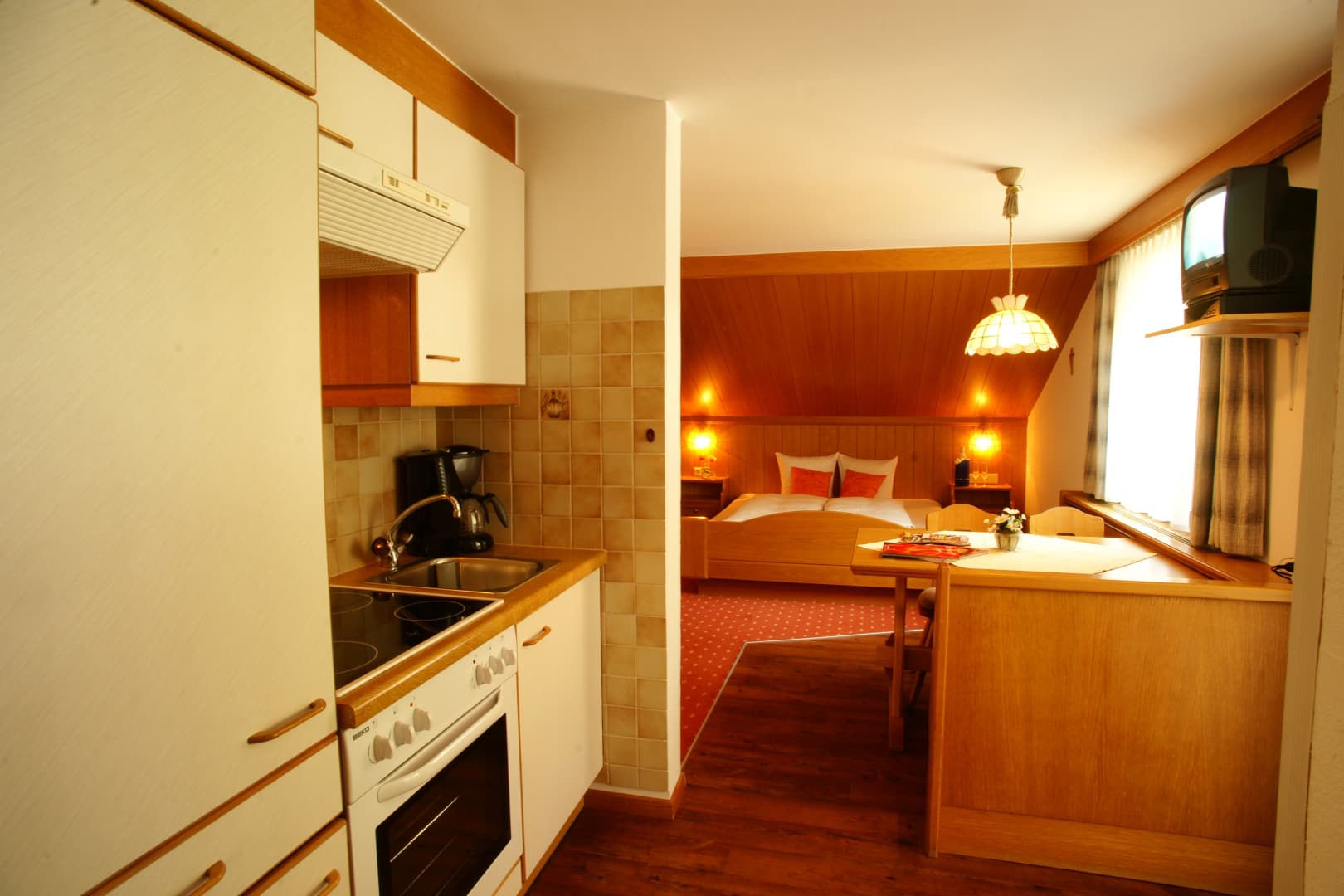 Taubenschlag – träumen in unserer heimeligen Wohnung. Wohlfühlen und Kuscheln in feiner Atmosphäre. Das Frühstück im Freien genießen , die ersten Sonnenstrahlen tanken und den Ausblick auf imposante Bergwelt erleben. Das ist Urlaub im Landhaus Raich - einfach schön.