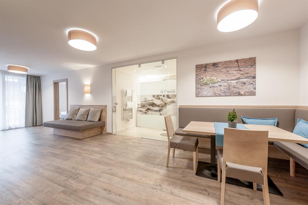 Genießen Sie auf ca. 75 m² Exklusivität & Privatsphäre im alpinen und luxuriösen Stil mit zwei Doppelzimmer, einem Badezimmer mit Badewanne und WC sowie einem Badezimmer mit Dusche und WC, Fön, Wohnküche mit allen Annehmlichkeiten. Die Appartements verfügen über 3 Flat-Screen-TVs, Balkon, Handtücher und Bettwäsche sowie Bademäntel und Badeslippers sind selbstverständlich vorhanden.