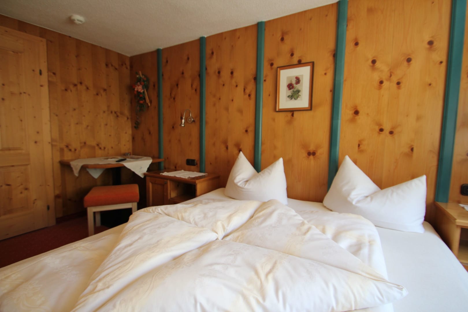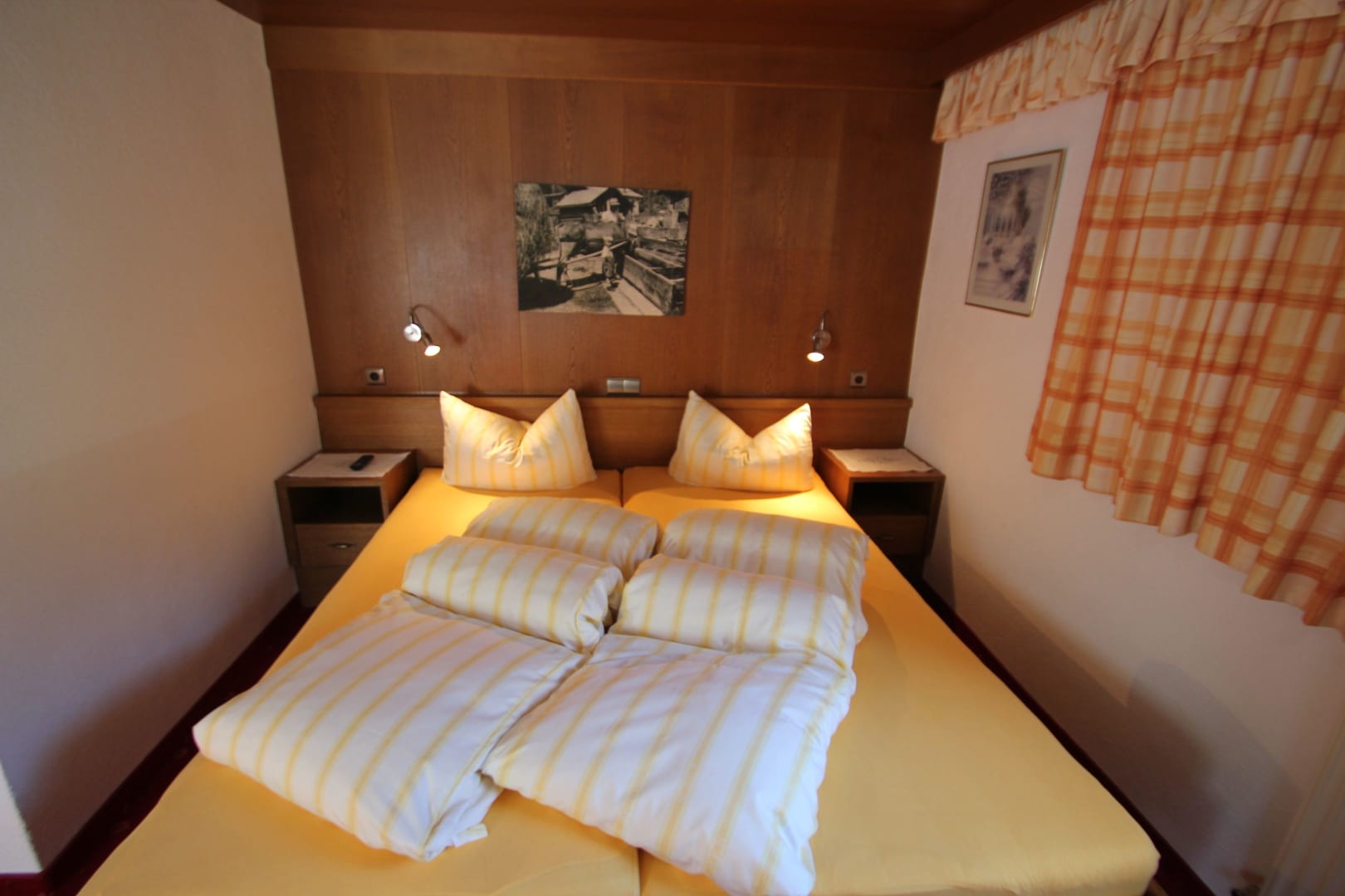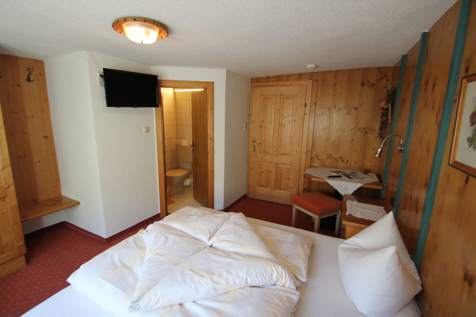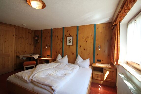 Doppelzimmer mit Dusche/WC, Fön, Safe, Digital-TV, Nichtraucherhaus, Parkplatz, Sonnenterrasse, gemütlicher Aufenthaltsraum mit Kachelofen, teilweise mit Balkon.