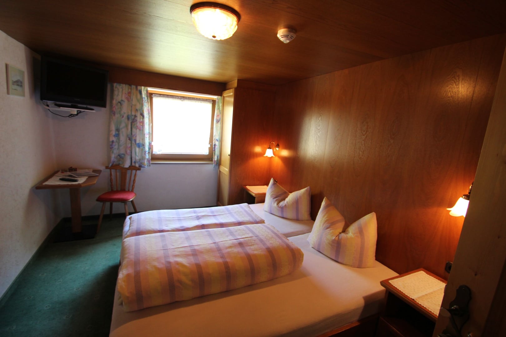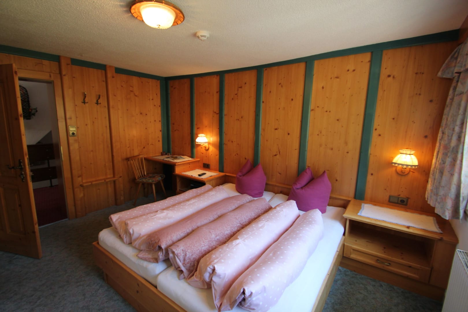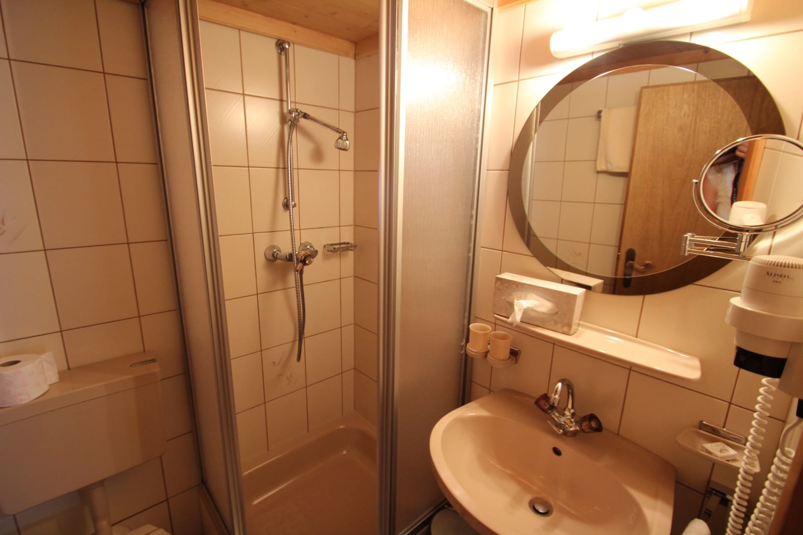 Doppelzimmer mit Dusche/WC, Fön, Safe, Digital-TV, Nichtraucherhaus, Parkplatz, Sonnenterrasse, gemütlicher Aufenthaltsraum mit Kachelofen, teilweise mit Balkon.