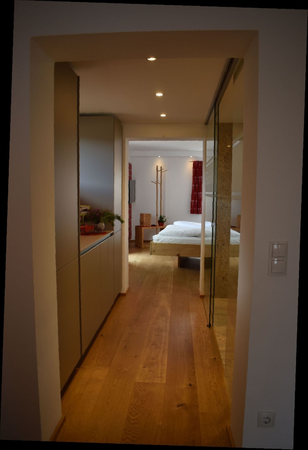 Die „Lärchenruhe“ ist unser Süd-Apartment. Der Balkon erstreckt sich über die gesamte Apartmentlänge. Die „Lärchenruhe“ ist 40m² groß, barrierefrei, verfügt über ein Schlafzimmer mit Doppelbett in Zirbe und Komforthöhe, SAT-TV, kostenloses WLAN und einer gemütlichen Sitzgelegenheit. Auf Anfrage haben auch 2 Erwachsene und 1 Kind Platz.