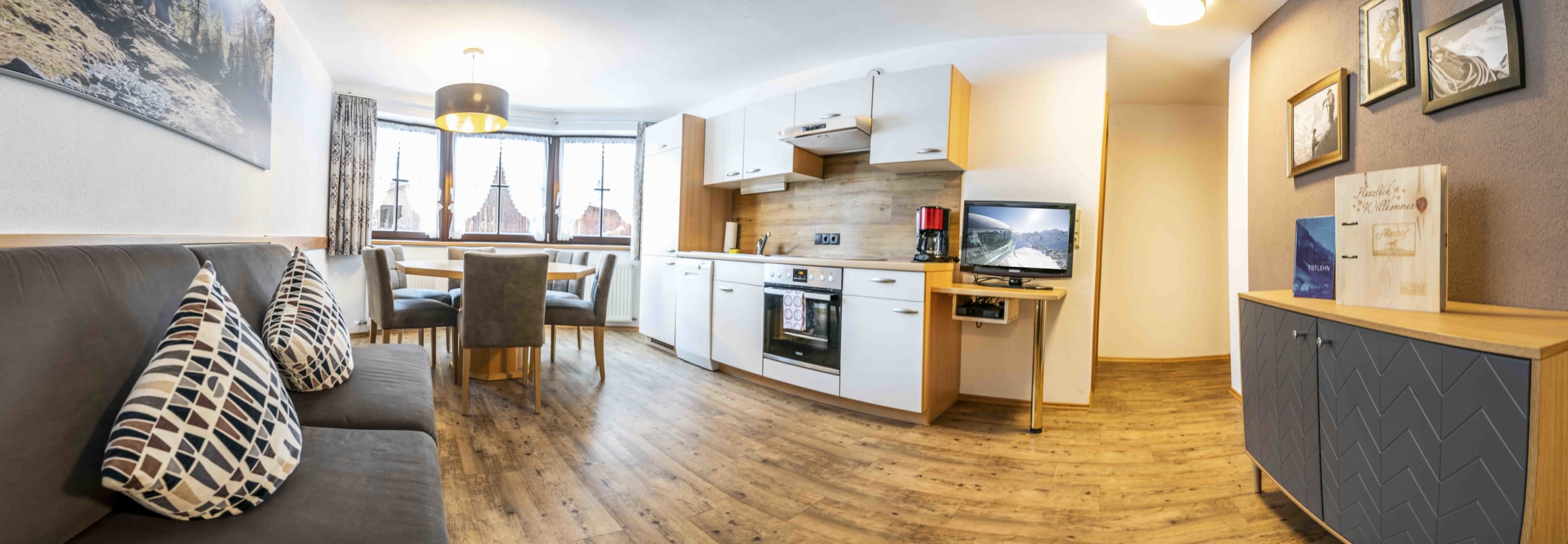Apartment Hubi Nr. 1 ist unserer große Ferienwohnung im Erdgeschoss. Die drei Schlafzimmer lassen Raum zum allein sein. Der eigene Wohnbereich mit eingerichteter Küche lassen alle zusammen kommen.