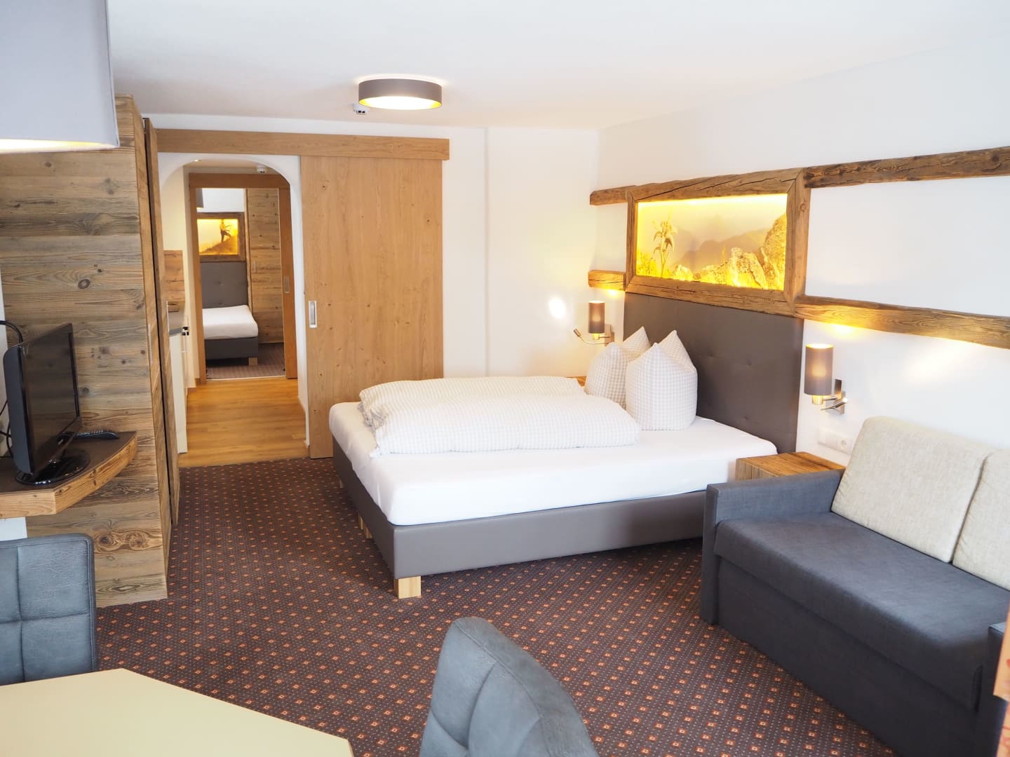 Apartment Mira Nr. 4 ist eine familienfreundliche Ferienwohnung. Der große Wohn- Schlafbereich lädt zum Zusammensein ein. Im separaten Doppelzimmer kann man sich zurückziehen und die Ruhe genießen. 55m2 (4-5 Pers.) mit kombinierten Wohn- Schlafbereich mit Doppelbett mit Schlafcouch, separates Doppelzimmer, großer Esstisch, kompl. eingerichtete Küche, Dusche/WC mit Föhn, 2xFlat/TV, Telefon/Internet, Südbalkon