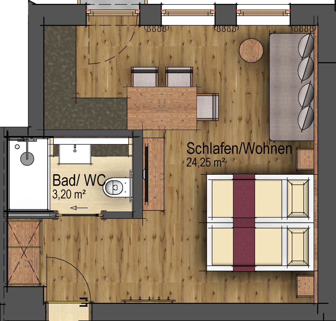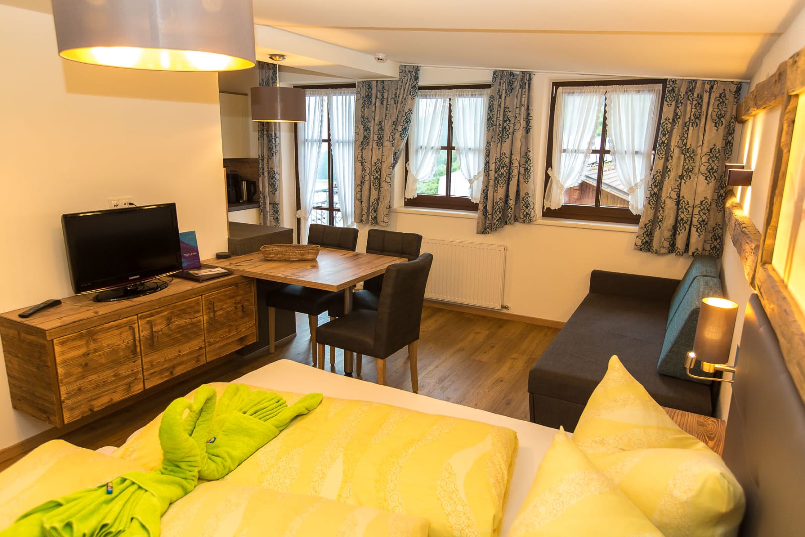 Apartment Flora Nr. 6 ist eine kleine aber feine Ferienwohnung. Aufwachen mit dem Blick auf den Mittagskogel. 30m2 (2-3 Pers.) mit Doppelbett und Einzelbett, kompl. eingerichtete Küche mit Esstisch, Dusche/WC mit Föhn, Flat Tv, Telefon/Internet + kleiner französischer Balkon