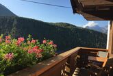 • Ostbalkon mit Blick auf die Ötztaler Berge, unsere Alpakas und zum Reitplatz