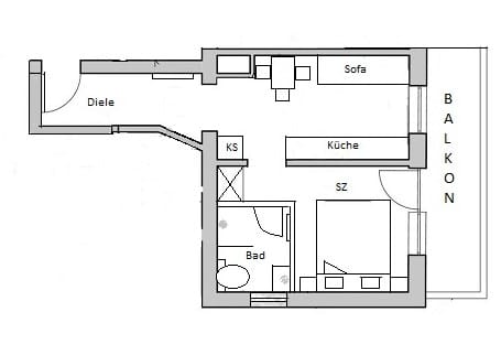 • Wohn - Essbereich mit Schlafcouch für 1 Person