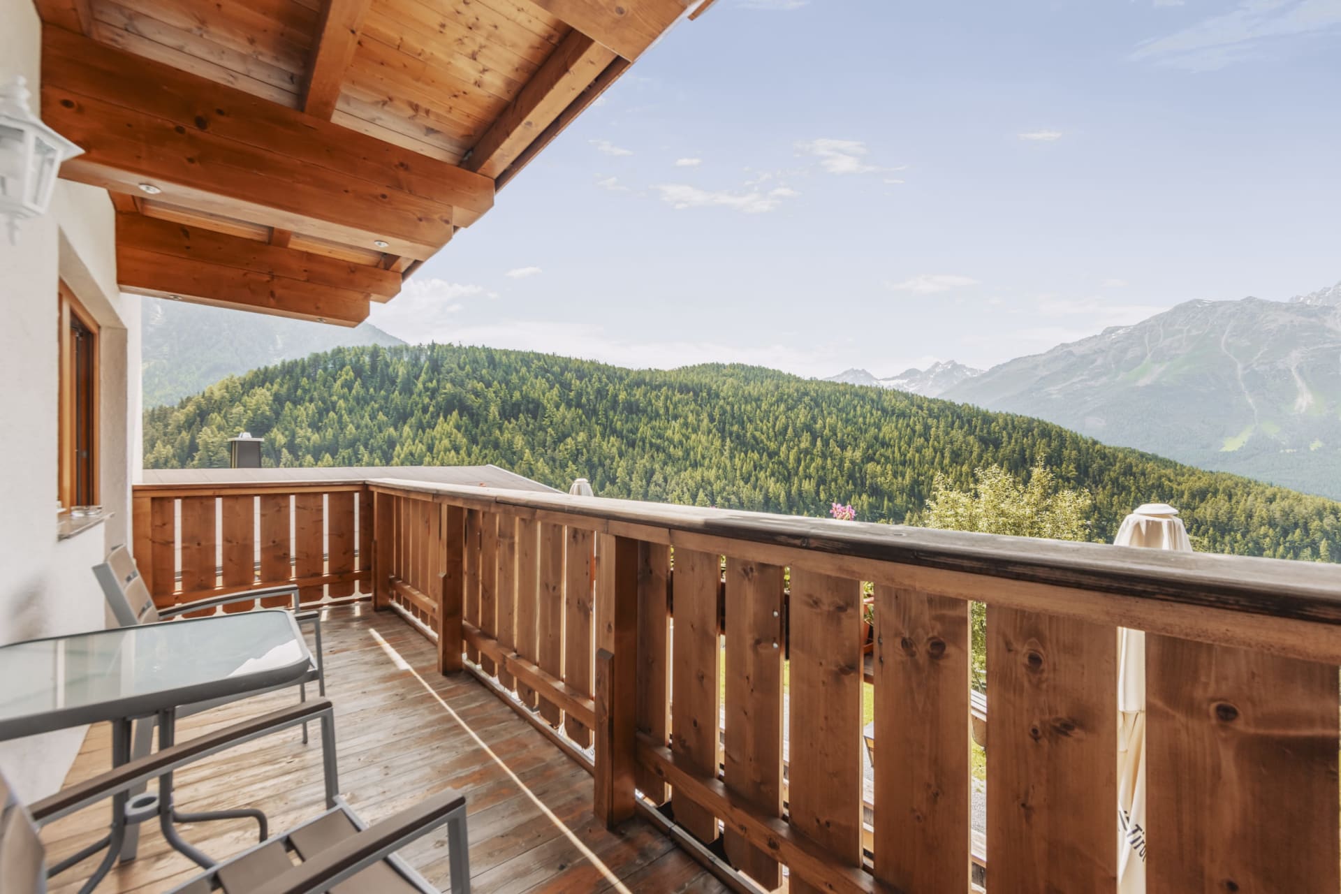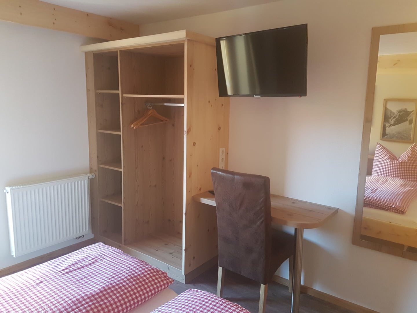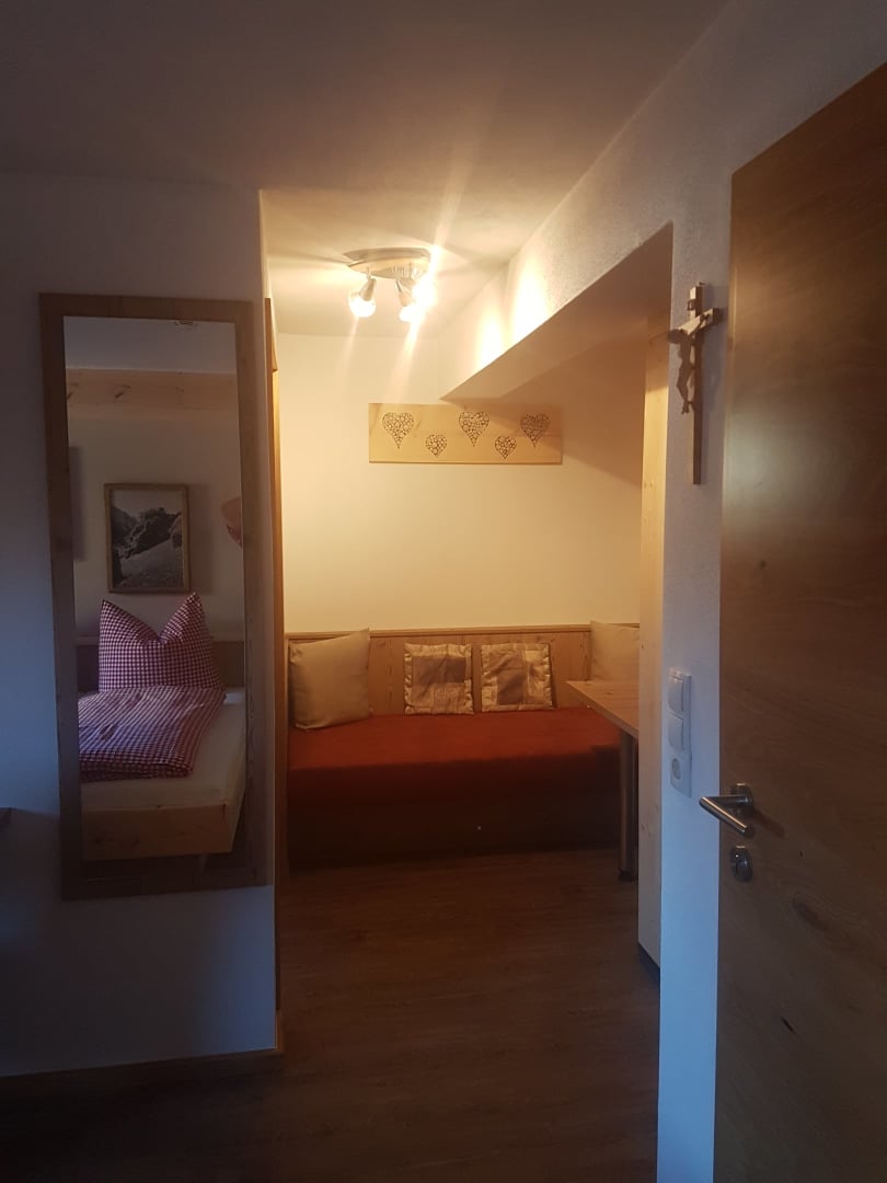 Das Zimmer Blockkogel ist mit einer Infarotkabine , großes Bad (Dusche und WC) und Zirben - Doppelbett ausgestattet.