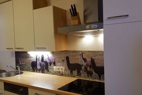 • Modern ausgestattete Küche mit 4 Platten Ceranfeld, Backrohr, Mikrowelle, Spülmaschine, Kühlschrank, Kaffeemaschine nach Wahl, Wasserkocher, Eierkocher & Toaster