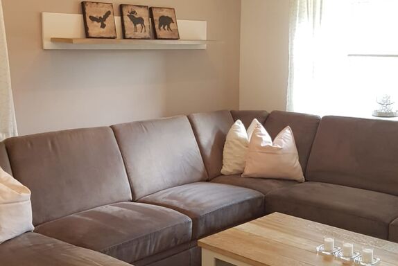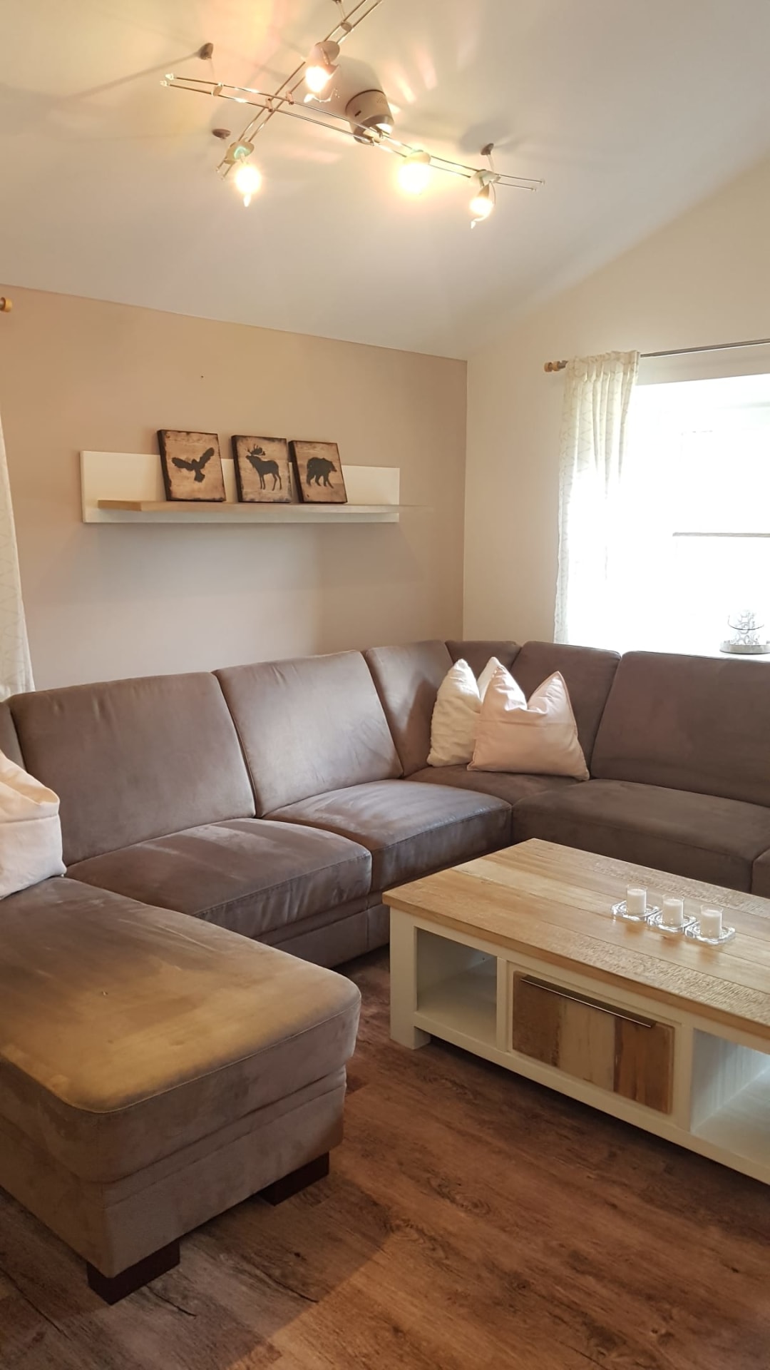 • Großes Wohnzimmer mit gemütlichem Ecksofa, Kamin,Flatscreen TV & Balkon