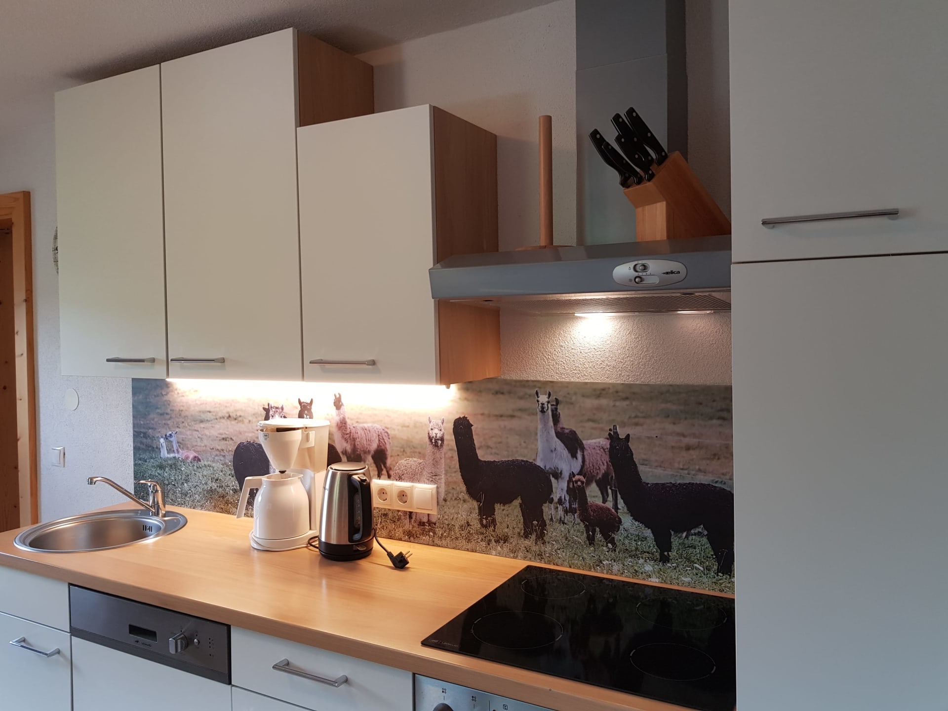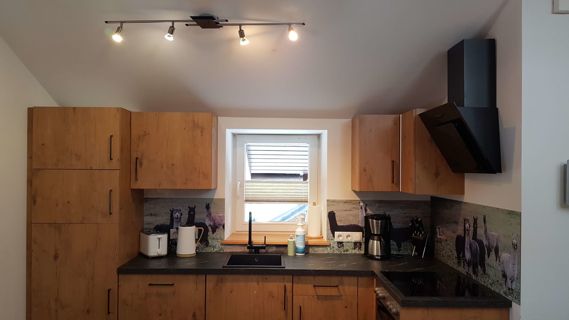 • Modern ausgestattete Küche mit 4 Platten Ceranfeld, Backrohr, Mikrowelle, Spülmaschine, Kühlschrank, Kaffeemaschine nach Wahl, Wasserkocher, Eierkocher & Toaster